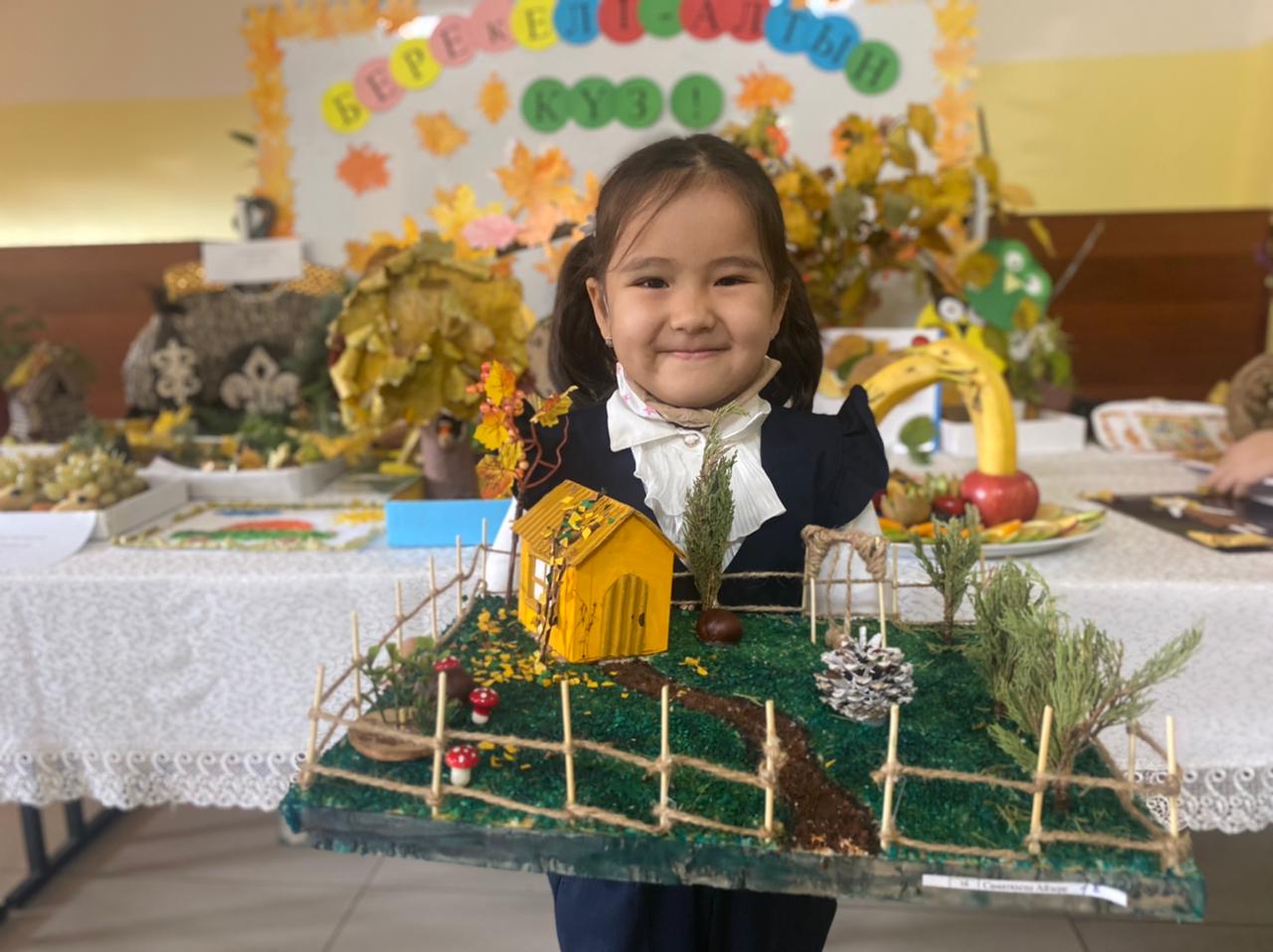 Жыл мезгілдерінің ішінде молшылық, береке мезгілі болып КҮЗ мезгілі саналады. Алтын күздің қадір- қасиетін ұғындыру үшін, мектебімізде “Жас Ұлан” ұйымының ұйымдастыруымен “Берекелі-Алтын күз” тақырында көрме ұйымдастырылды. Көрмеге қойылған барлық дүниелерді оқушылар өз қолдарымен күз мезгіліне тән болатын заттарды қолдана отырып жасап әкелді.