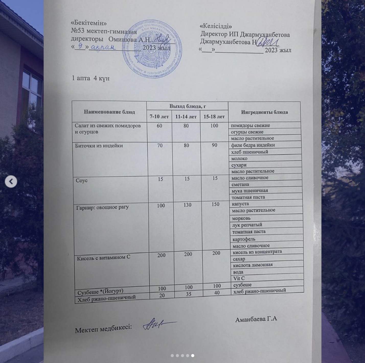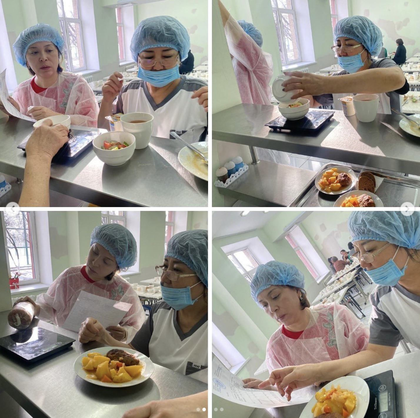 Мектеп директоры Омишова Асем Нурмуханбетовна бастаған бракераждық комиссия мүшелері мектебіміздегі асхананың тазалығы мен тамақтандырудың сапалық құрамын, мәзір мөлшеріне тексеріс жүргізді. Тексеріс барысында ас дайындайтын, сақтайтын орындарға кіріп, азық-түліктің сақтау мерзімі, сақталу орны мемлекеттік нормаларға сай келетініне, құжаттық қағидаттарды сақтайтынына көз жеткізіп ризашылығын білдіріп, оң бағасын берді.