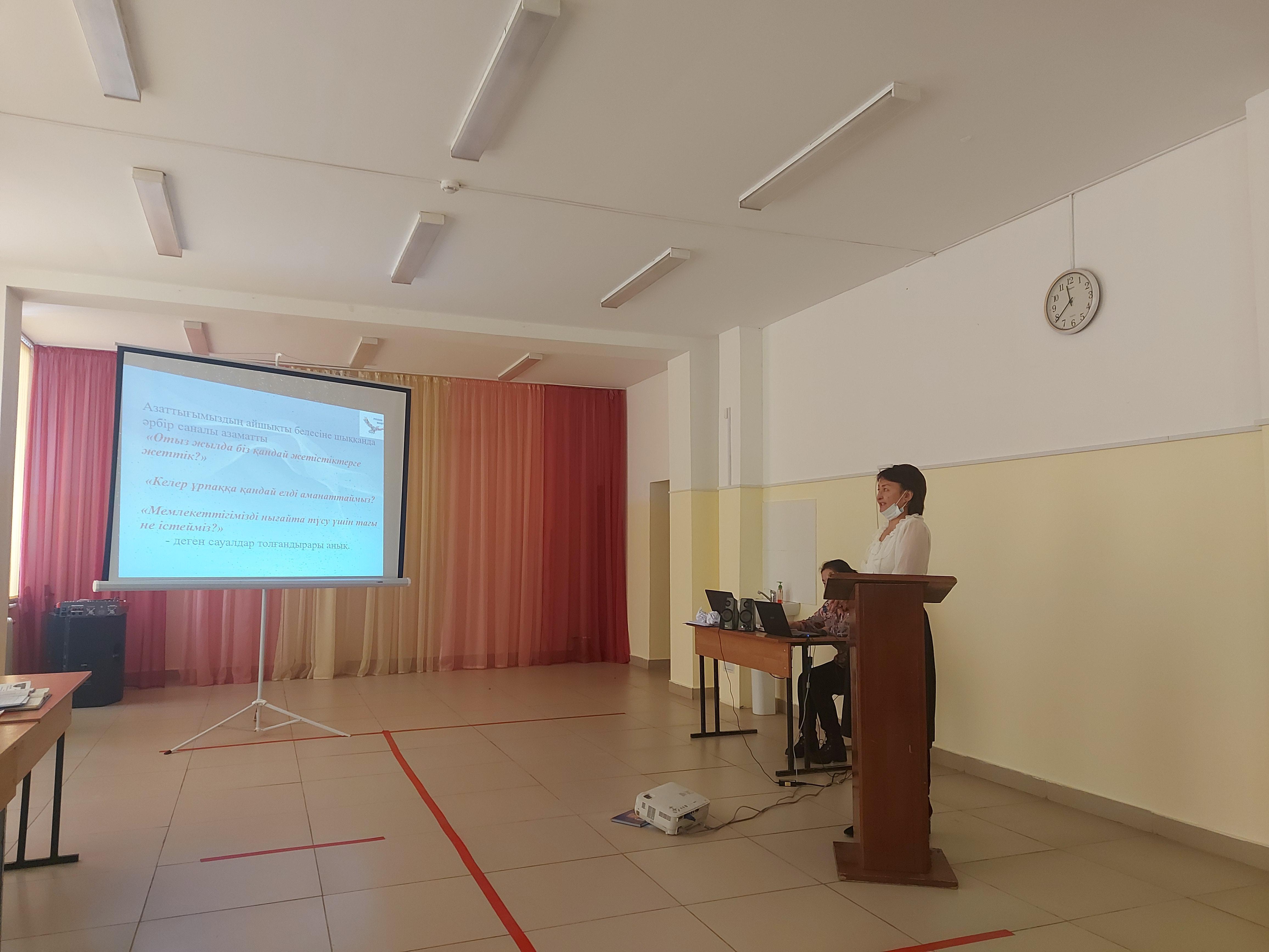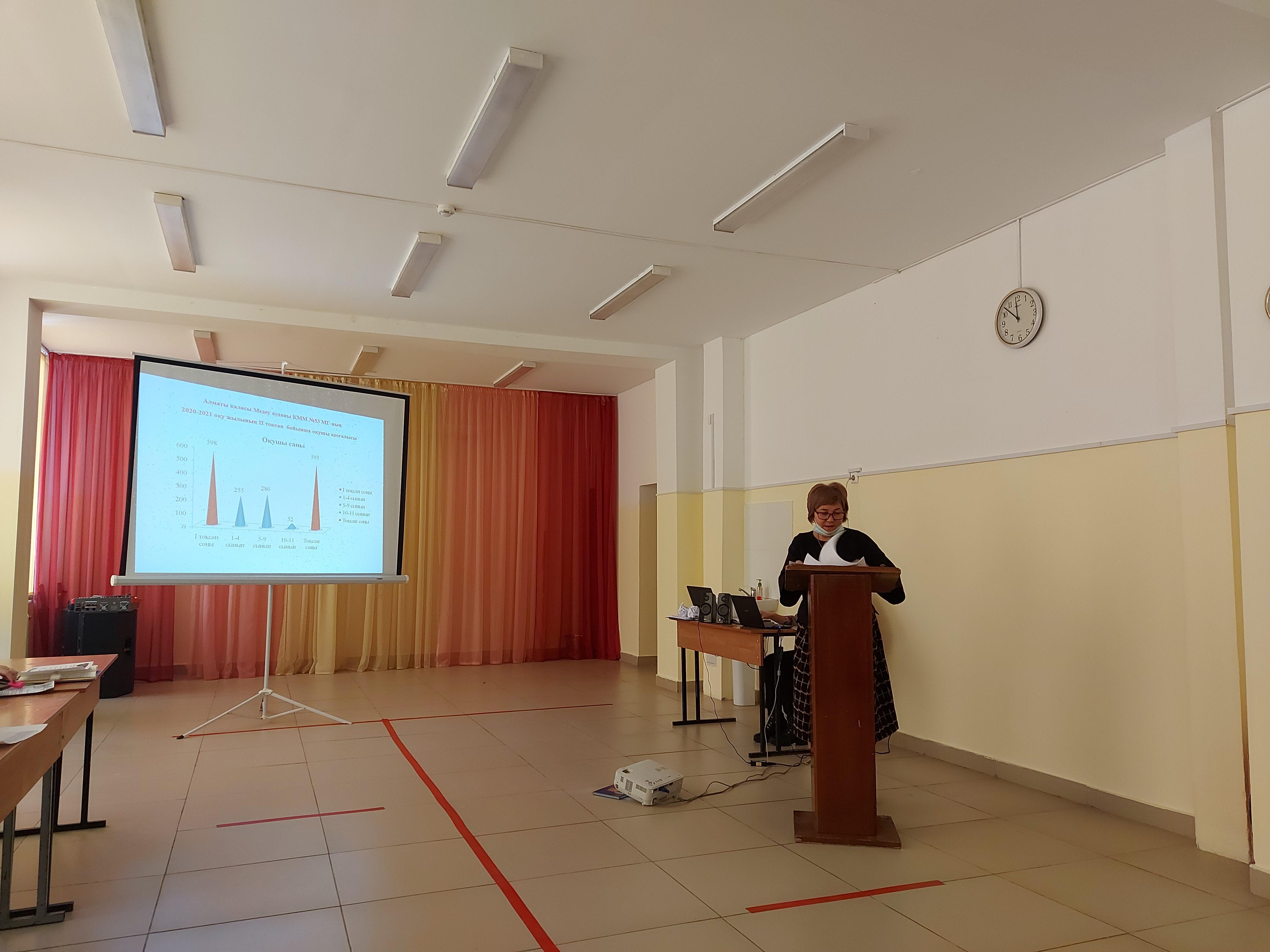 Алматы қаласы №53 мектеп-гимназиясында қаңтар айының 14 жұлдызы күні кезекті педагогикалық кеңес өтті. Күн тәртібінде төмендегі мәселелер қаралды: 1) ҚР Президентінің "Тәуелсіздік бәрінен қымбат" мақаласы; Баяндама оқыған тарих пәнінің мұғалімі Айтуғанова Ляззат Кажыбаевна. 2) II тоқсанның қорытындысы бойынша мектеп оқушыларының білім сапасы. Баяндама оқыған мектеп-гимназиясының оқу ісі жөніндегі орынбасары Кунишбаева Гульнар Нуржумаевна. 3) II тоқсанның тәрбие жұмысы бойынша қорытынды есебі; мектеп-гимназиясының тәрбие ісі жөніндегі орынбасары Бейсембай Назерке Сәбитқызы. 4) Тренинг: "Көңіл көтеріңкі ұстаздың, еңбегі жемісті болады". Мектеп-психологы Бахрадин Гулфариза Жәдігерқызы, мектеп-логопеді Қамаділ Жадыра; 5) Әлеуметтік педагогтың жартыжылдық есебі. Әлеуметтік педагог Метербай Айшуақ Ақажанқызы; 6) Әртүрлі мәселелер; 7) Педагогикалық кеңестің шешімі; Психологиялық тренингте "Ыстық картоп" ойыны, жас мамандардың ортаға бейімделуі аясында "Ортаға бейімделу" атты жаттығу ойындары ойнатылды. Өткізілген психологиялық тренинг мұғалімдерге жақсы көңіл-күй сыйлады. Педагогикалық кеңес өте мазмұнды, әрі қызықты өтті. #53мектепгимназия #педкеңес #қашықтықтаноқыту @akimat_almaty @akimat_medeu @medeuustaz @medeu_roo