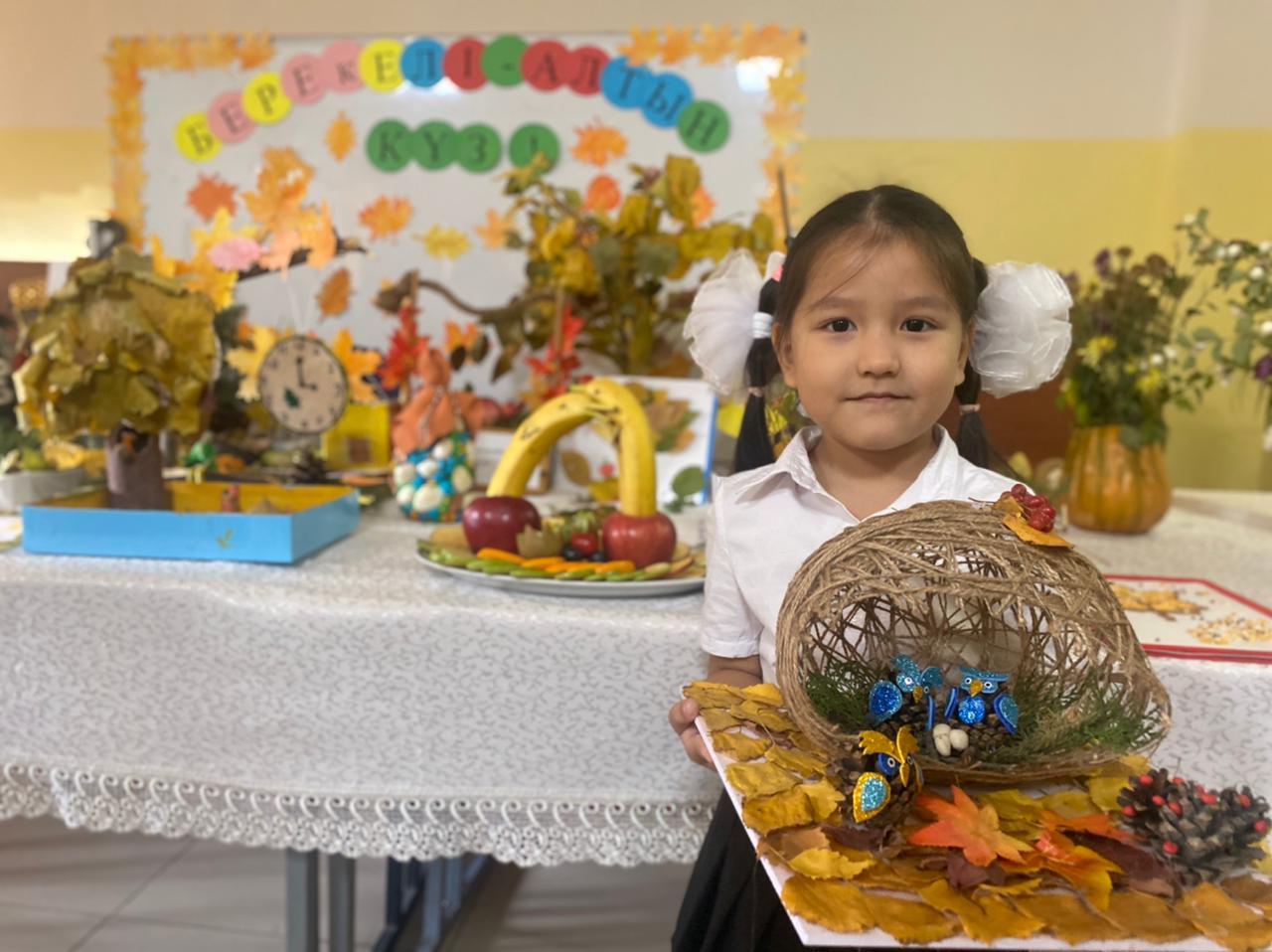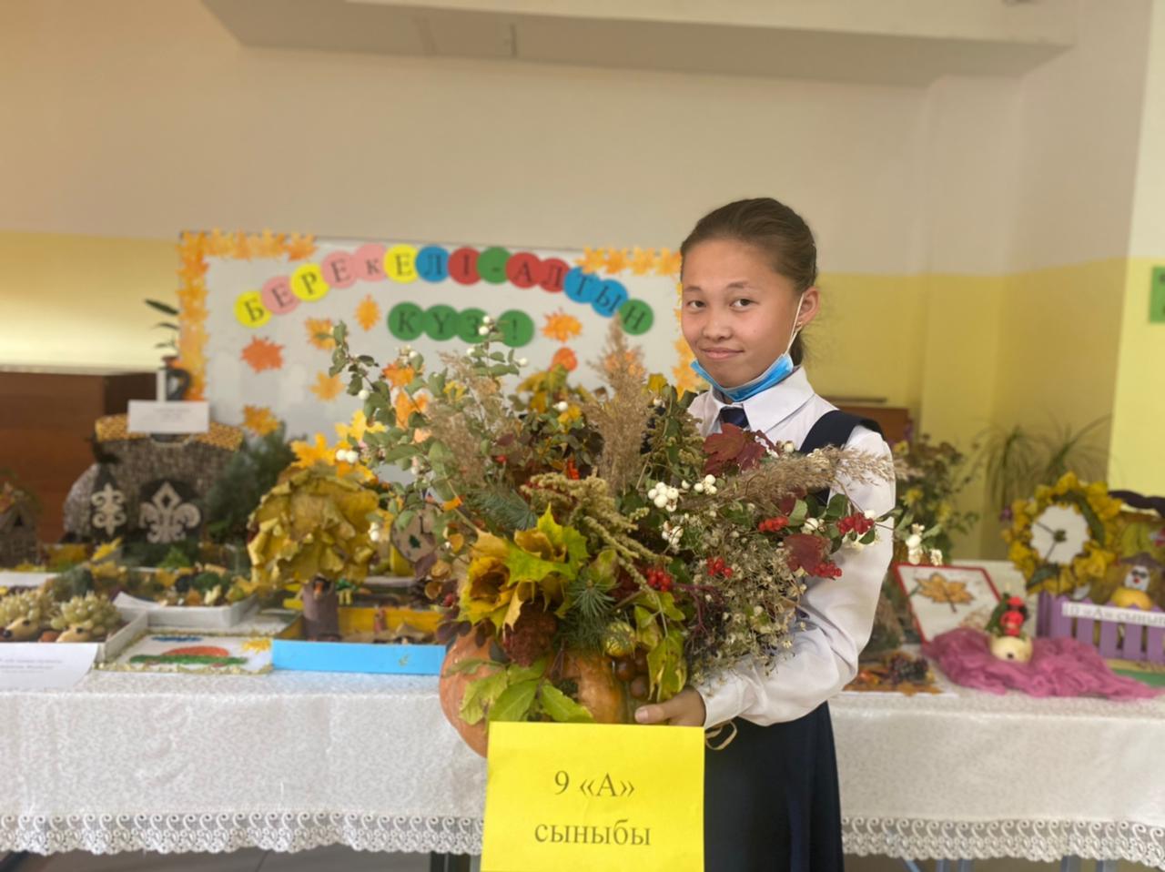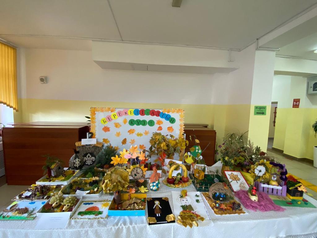 Жыл мезгілдерінің ішінде молшылық, береке мезгілі болып КҮЗ мезгілі саналады. Алтын күздің қадір- қасиетін ұғындыру үшін, мектебімізде “Жас Ұлан” ұйымының ұйымдастыруымен “Берекелі-Алтын күз” тақырында көрме ұйымдастырылды. Көрмеге қойылған барлық дүниелерді оқушылар өз қолдарымен күз мезгіліне тән болатын заттарды қолдана отырып жасап әкелді.