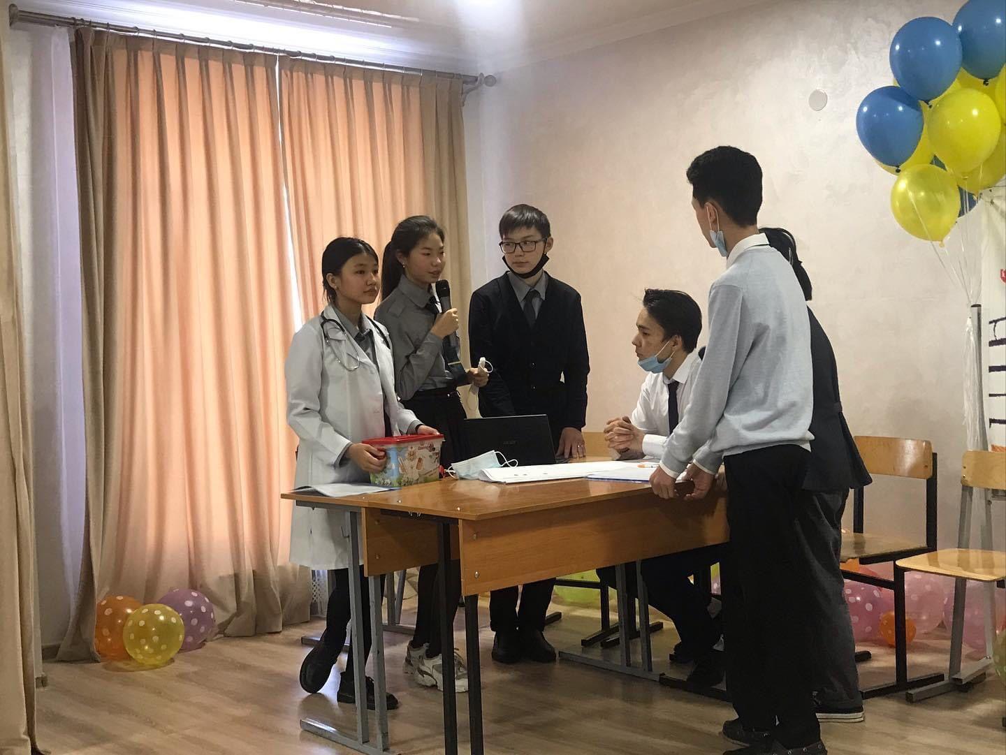 15 декабрь 2021 0 1 2 3 4 5 Қазақстаннның болашағы жастар қолында 10-сынып оқушылары арасында “Қазақстаннның болашағы жастар қолында” тақырыбында ток- шоу өтті. Оқушылар еліміздің болашағының жарқын болуы үшін ең алдымен мамандықты дұрыс таңдау керек екендігін көрініс көрсету арқылы көрермендерге жеткізді.