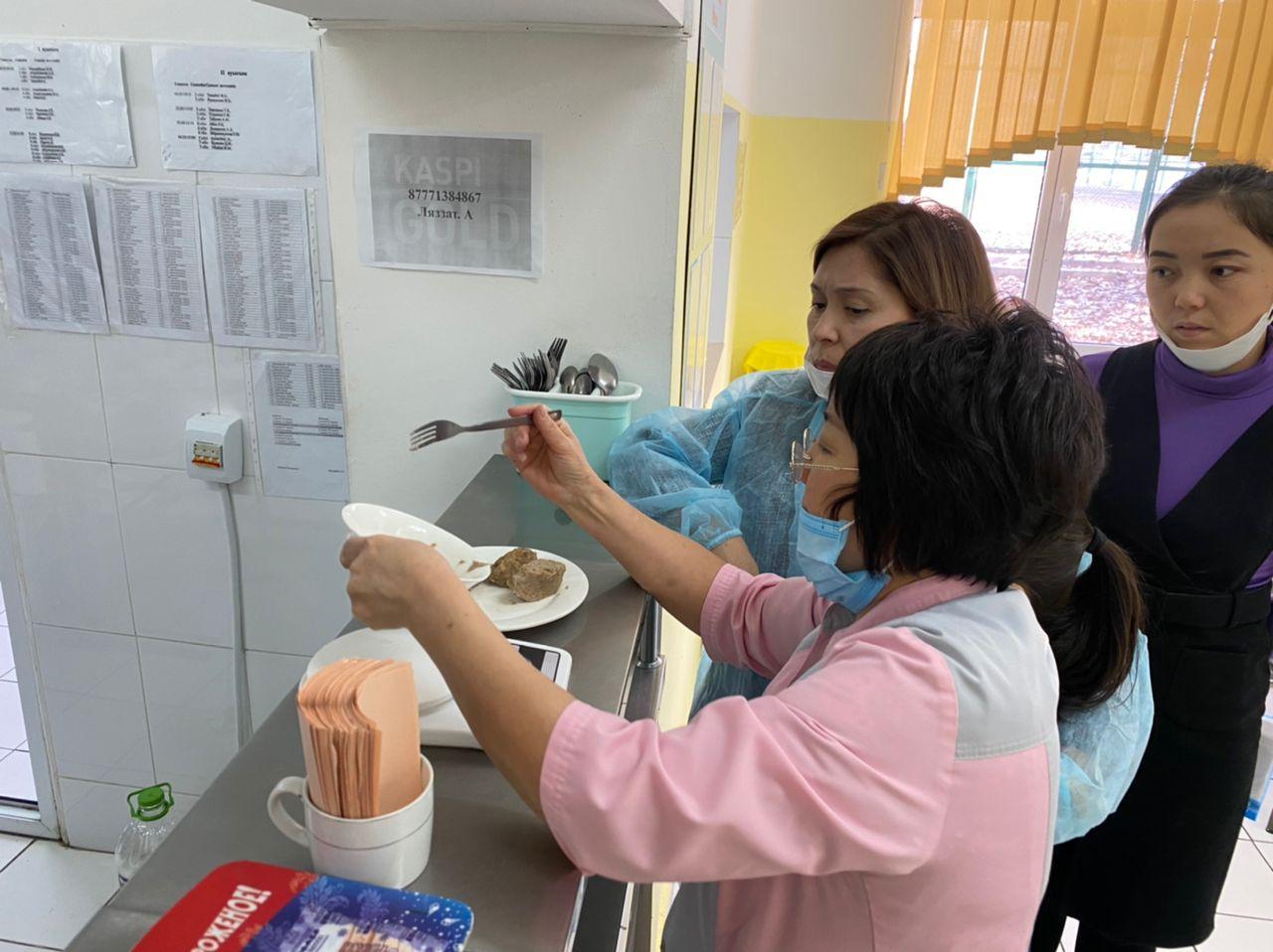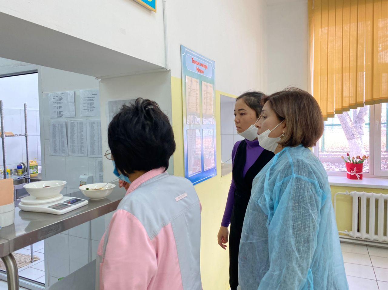 2021 жылдың 8-қазан күні бракераждық комиссия мектеп асханасын тексеріп қайтты. Осы күнгі ас мәзірінде:балғын (свежий) қиардан жасалған салат, еттен жасалған котлет,күріш,ара балы және сок болды. Мәзірде көрсетілген тағамдар мен аспаздық өнімдердің атаулары рецептуралар жинақтарында көрсетілген атауларға сәйкес. Басқа да тамақ өнімдерінің жарамдылық мерзімдері және оларды сақтау шарттары өндіруші (дайындаушы) белгілеген жарамдылық мерзімдеріне сәйкес келді. Оқушылардың барлығы әр қоңырауда келіп,тамақтану кестесі бойынша тамақтанады. Пісірілген тағамдар нәрлі әрі балғын. Бірақ тексеріс барысында І-ауысымда тамақтанып отырған оқушылардың тағамдарының салмағын өлшеу кезінде котлетпен күріштің салмағы берілетін нормаға сай болмады, 1-4 сынып оқушыларына берілетін котлеттің салмағы 65-70 гр көрсетіп тұр. Мектеп директоры аспазшыға қатаң ескерту берді.Асхананы қадағалау жұмыстарын одан әрі күшейтуді мектептің әлеуметтік педагогы А.А. Метербай және мектеп медбикесі Г.Аманбаева мен директордың тәрбие орынбасарларына жүктеді.
