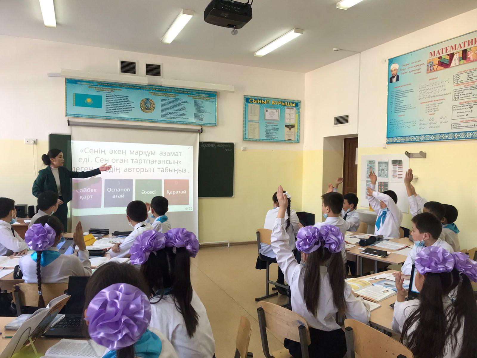 📚📖📙22.02.2022ж күні 5 «Ә» сыныбы қазақ әдебиеті пәнінен “Марат Қабанбай. “Бауыр әңгімесі”” тақырыбында ашық сабақ өтті. Сабақ барысында оқушылар “Почта”, “Сыңарын тап”, т.б секілді қызықты әдістер арқылы жаңа тақырыпты жақсы меңгеріп шықты.