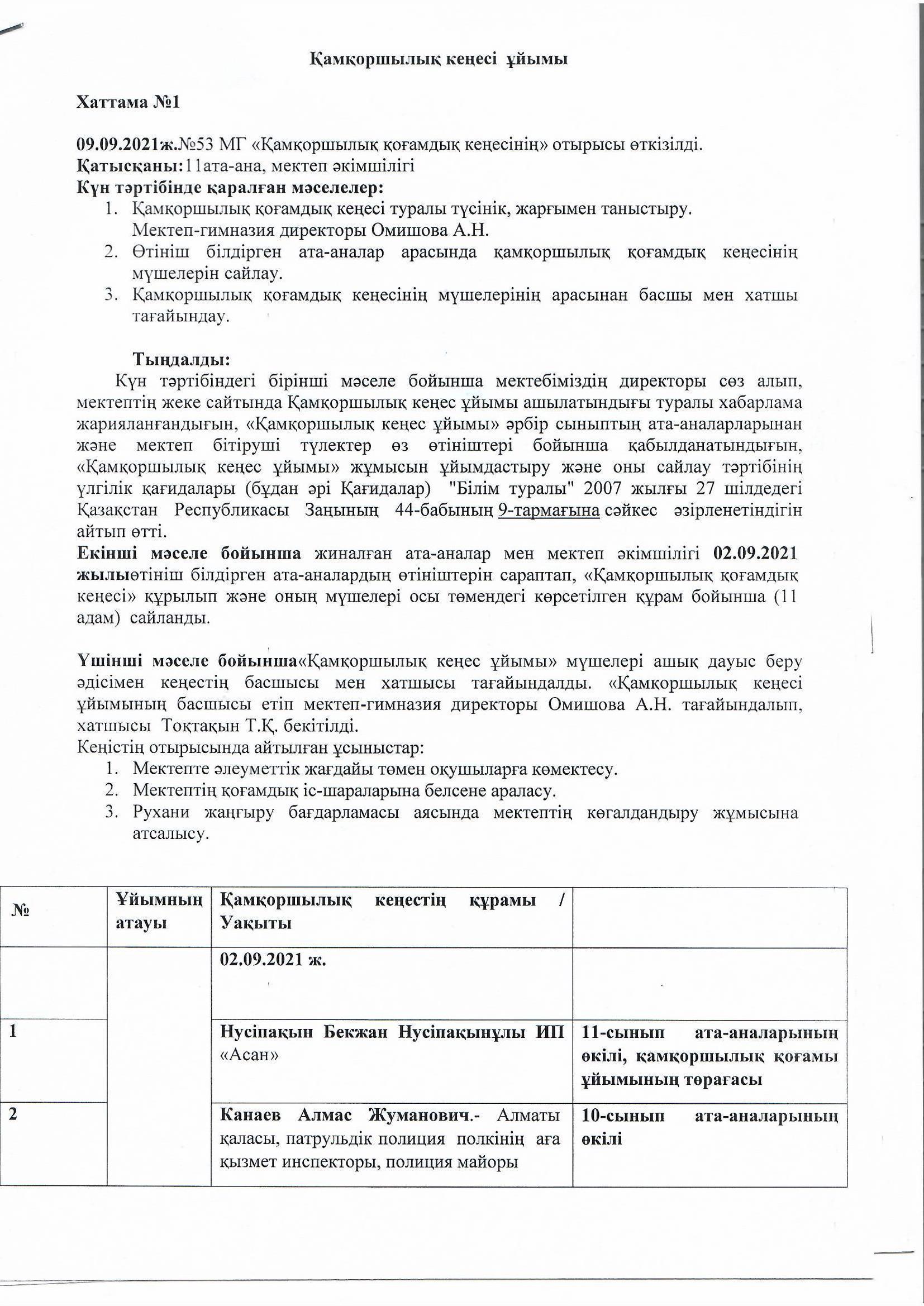 » Қамқоршылық кеңесі ұйымы (Хаттама №1)