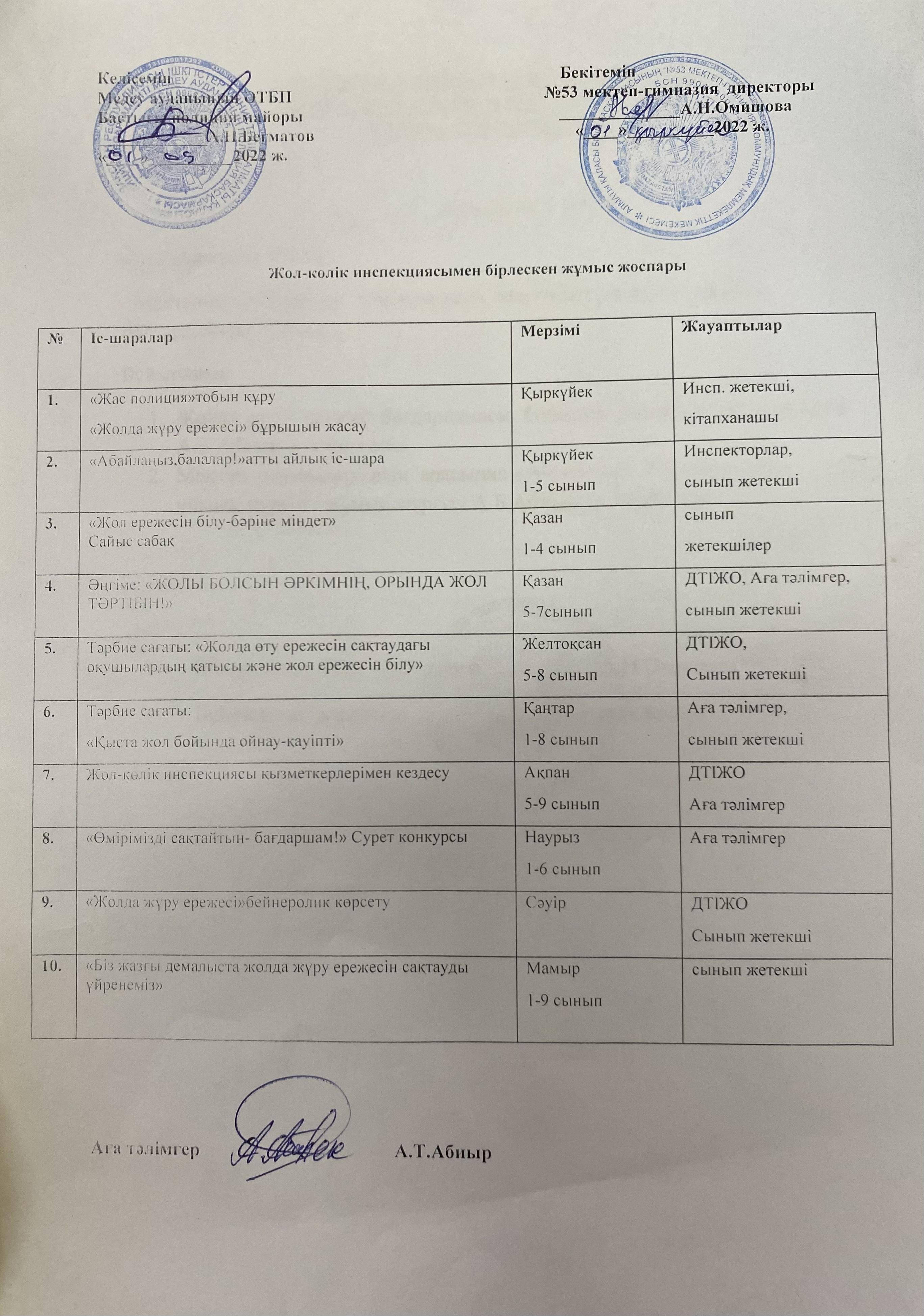 01 сентябрь 2022 0 1 2 3 4 5 Жол-көлік инспекциясымен бірлескен жұмыс жоспары және жолда жүру ережелері