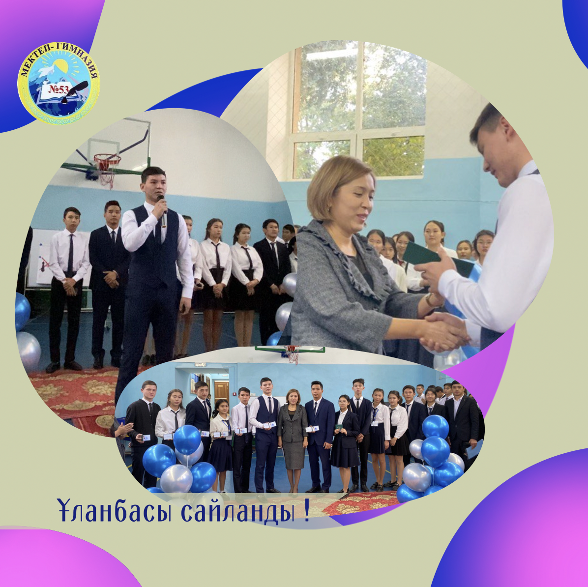 Бүгінгі салтанатты жиында өзін-өзі басқару ұйымының мүшелері әр фракция бойынша тағайындалып , мектеп директоры А.Н. Омишова куәліктерін табыстады. Сайлау нәтижесінде ең жоғары дауыс жинаған 10 "А" сынып оқушы Хамит Еркебұлан мектеп Ұланбасы болып сайланып, оқушылар мен ұстаздарының алдында ант қабылдады.
