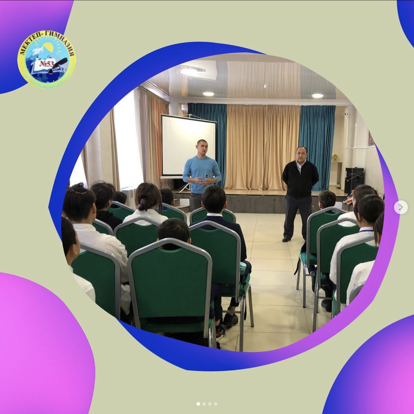 Алматы қаласы Білім басқармасына қарасты "Оқушылар сарайының" жанында "Жас турист" туристік-өлкетану үйірме жетекшісі, қосымша білім беру педагогы Сәтбай Нұрсұлатан Бұралқыұлы мен директордың тәрбие ісі жөніндегі орынбасары Аргынбаев Арман Токтасынович мектебіміздің оқушыларына саяхаттың пайдалы тұстарын айтып берді.Туризм оқушыларды төзімділікке, ұйымдастырушылыққа, еңбек сүйгіштікке, қолайсыз жағдайларда қиындықтарды жеңуге тәрбиелейді. Туристік дағдырларды арттыру, сауықтыру жұмыстарын өз еркімен ұйымдастыру, алынған дағдыларды өмірде кездесетін қиын жағдайларда қолдана білу, әсем де көрікті жерлерді аралау мүмкіндігі пайда болатынын хабарлады. Оқушылар тарапынан қызығушылық пайда болып, үйірме құрамына кіруге өтініш айтқандарда болды.