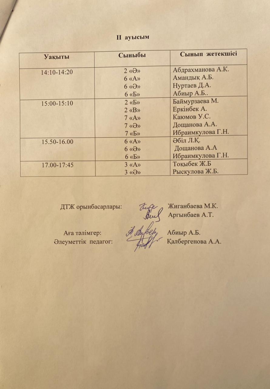 » Оқушылардың тамақтану кестесі