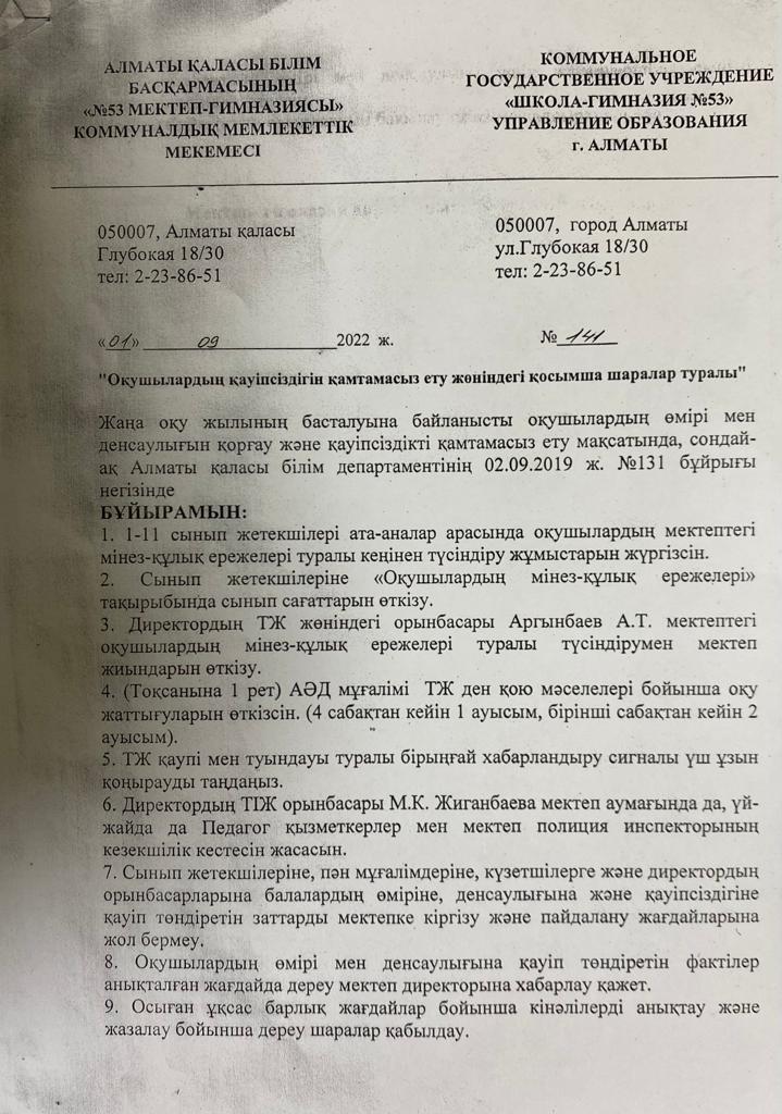 01 сентябрь 2022 0 1 2 3 4 5 Оқушылардың қауіпсіздігін қамтамасыз ету жөніндегі қосымша шаралар туралы