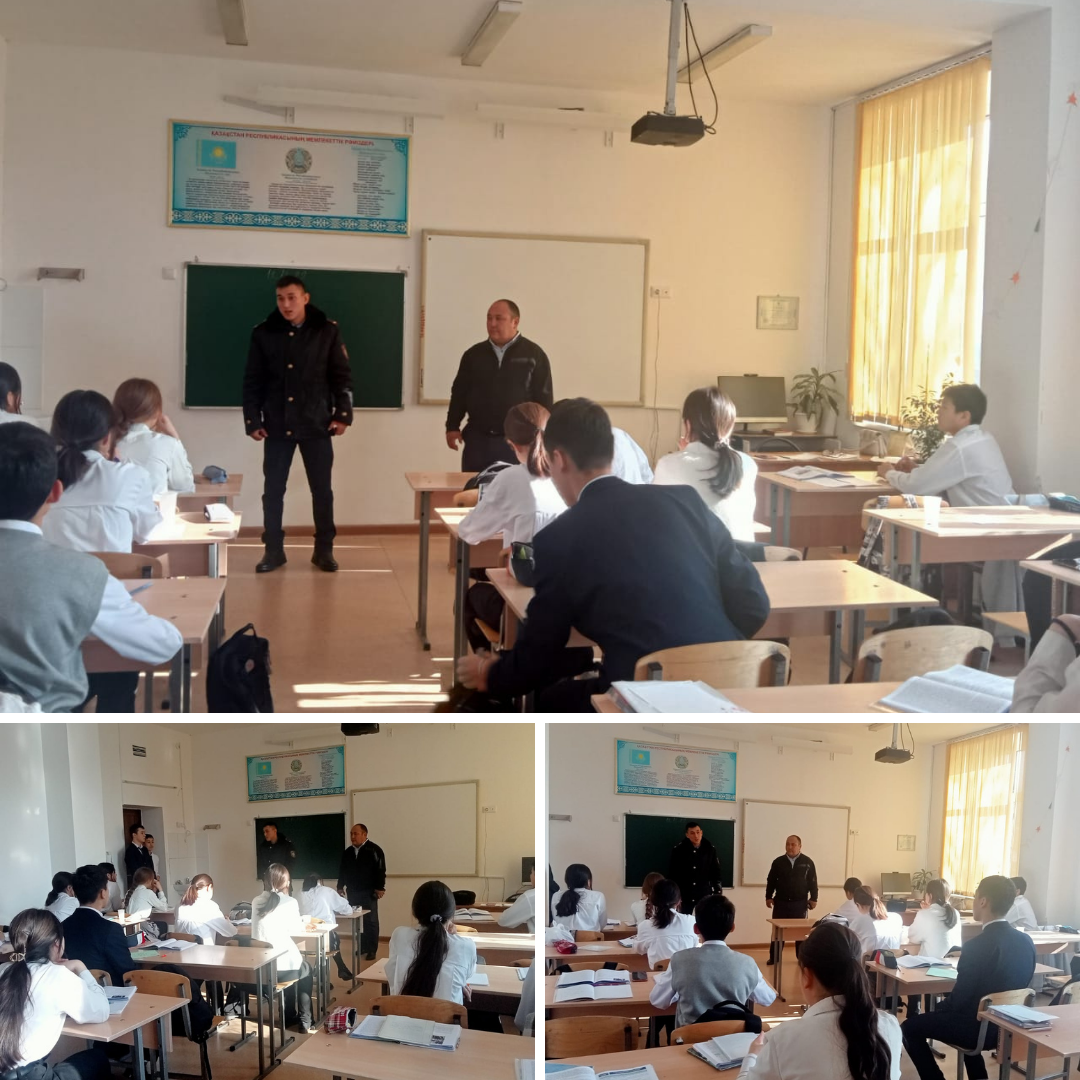 Жаңа жылдық мереке қарсаңында түрлі қауіпті заттарды тұтынудың алдын алу мақсатында мектеп инспекторы Манаев Айдар Асхатулы, директордың тәрбие ісі жөніндегі орынбасары Аргынбаев Арман Токтасынович сыныптарды аралап оқушыларға түсіндірме жұмыстарын жүргізді.