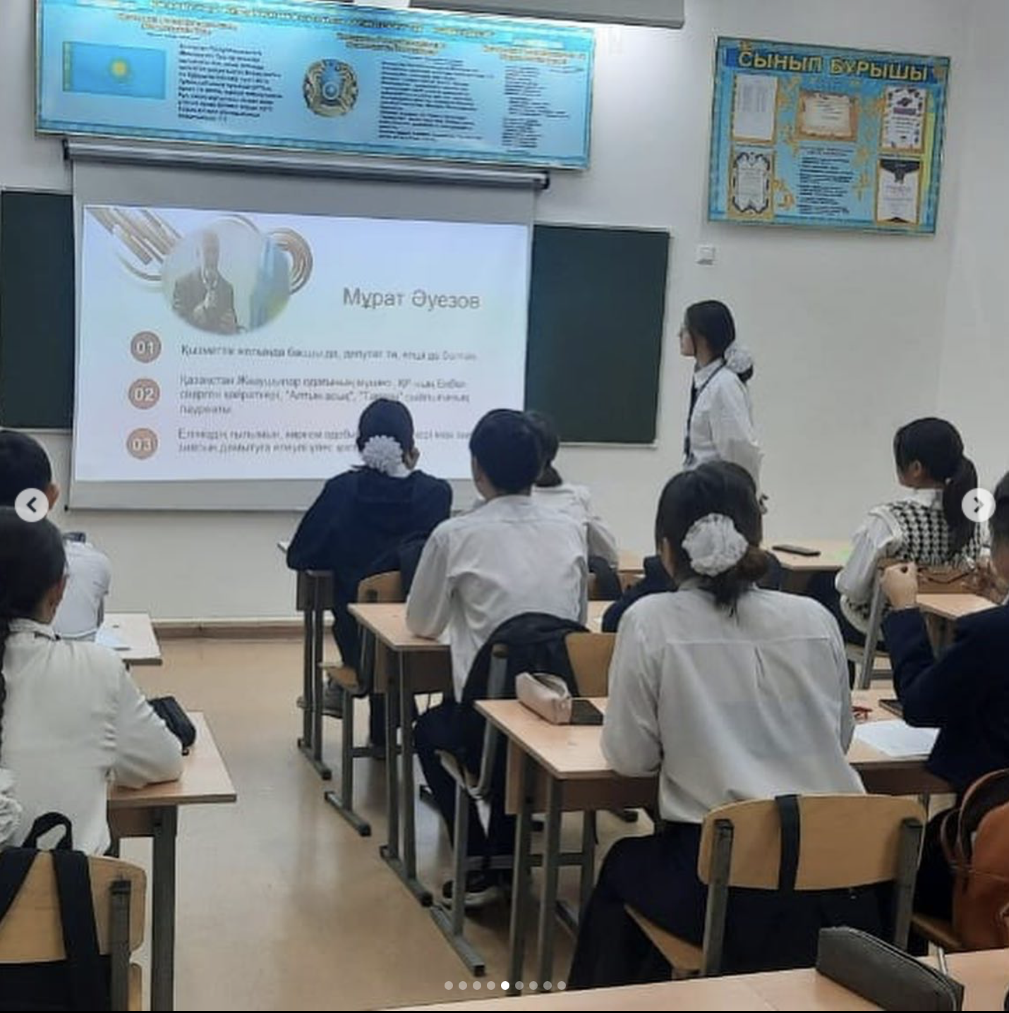 Оқушыларды Мұрат Әуезовтың өмірбаянымен атқарған еңбектерімен танысу мақсатында бүгін 8 «А» сынып жетекшісі Кукиева Дина «Мұрат Әуезовқа 80 жыл » тақырыбында танымдық сабақ өткізді.