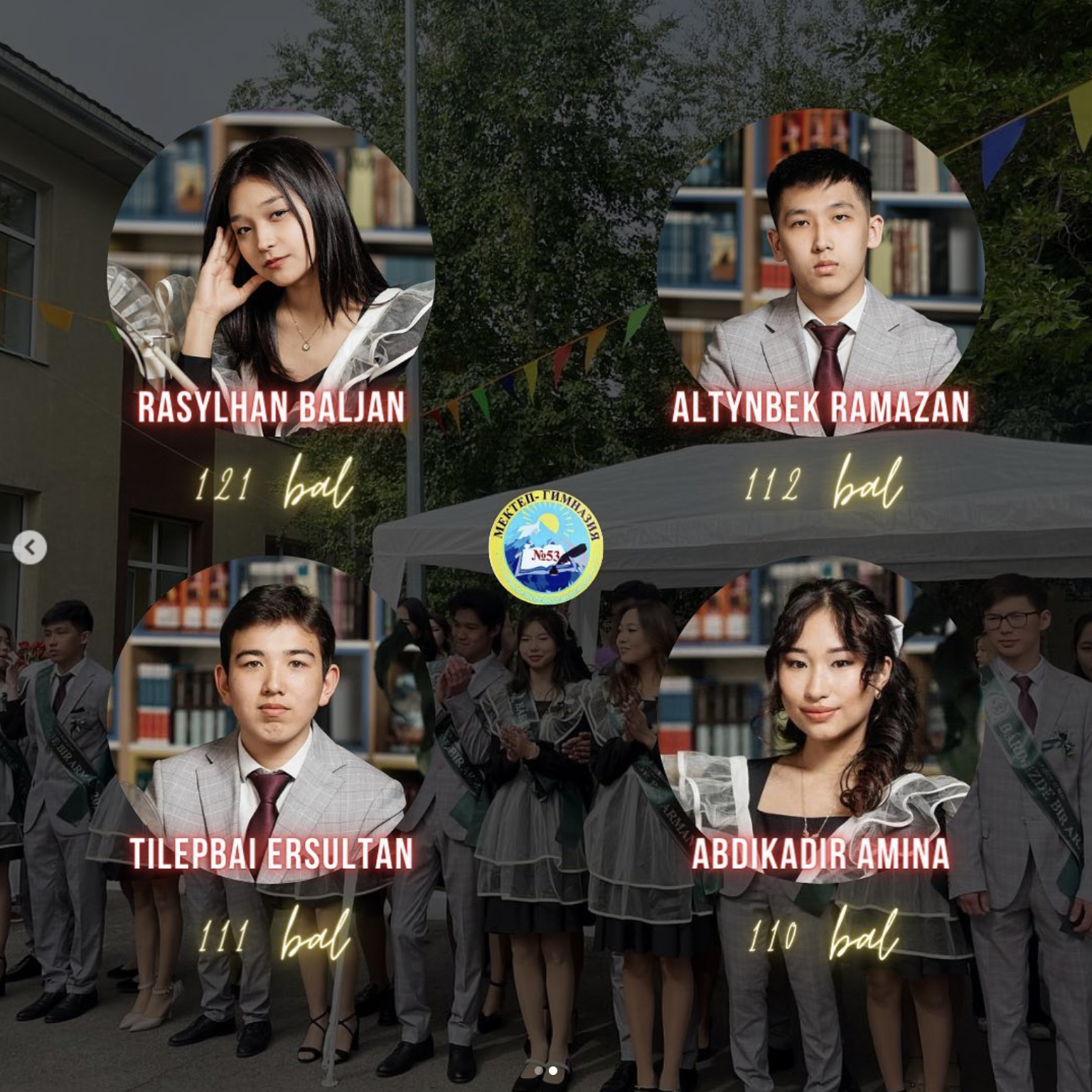 23-мамыр бітіруші түлектеріміз үшін ҰБТ өткізілген болатын, ең жоғарғы бал жинаған ТOP-4 қабыл алыңыздар 👆🏻