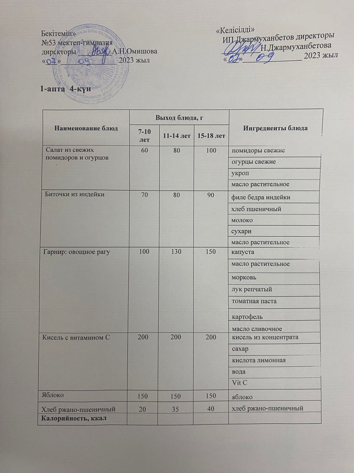 Сабақ кестесі