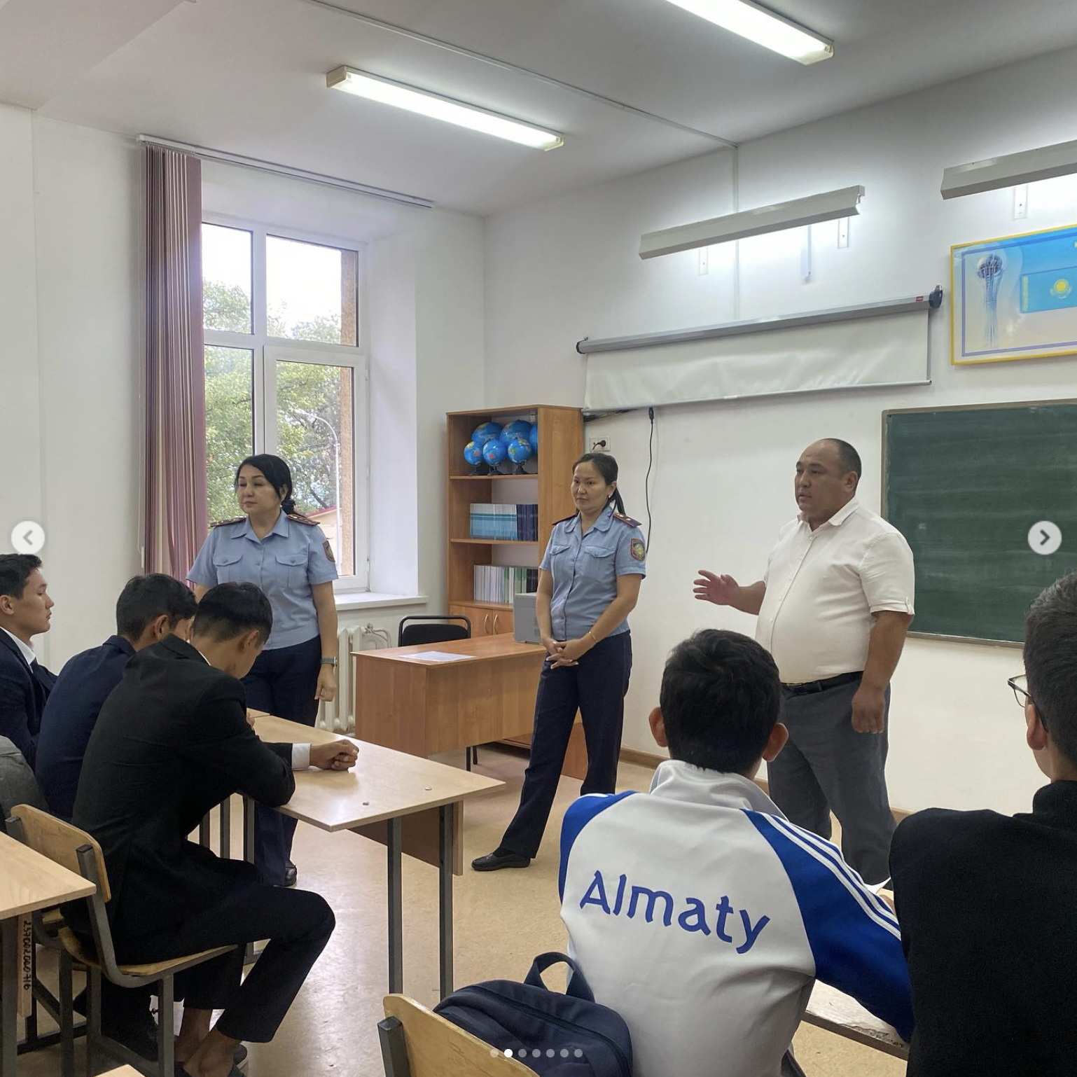 15 қыркүйек 9-10 сыныптар арасында «Құқық бұзушылықты болдырмау және діни экстремизм, терроризмнің алдын алу» мақсатында, Медеу ауданы ПБ ЮПБ аға инспекторы полиция майоры А.Кабдрашидова, полиция майоры Б.Муратканкызы, полиция капитаны А.Нурымбетованың және директордың тәрбие ісі жөніндегі орынбасары А.Токтасынович қатысуымен, еркін тілдесу дәрежесінде дәріс өткізілді.