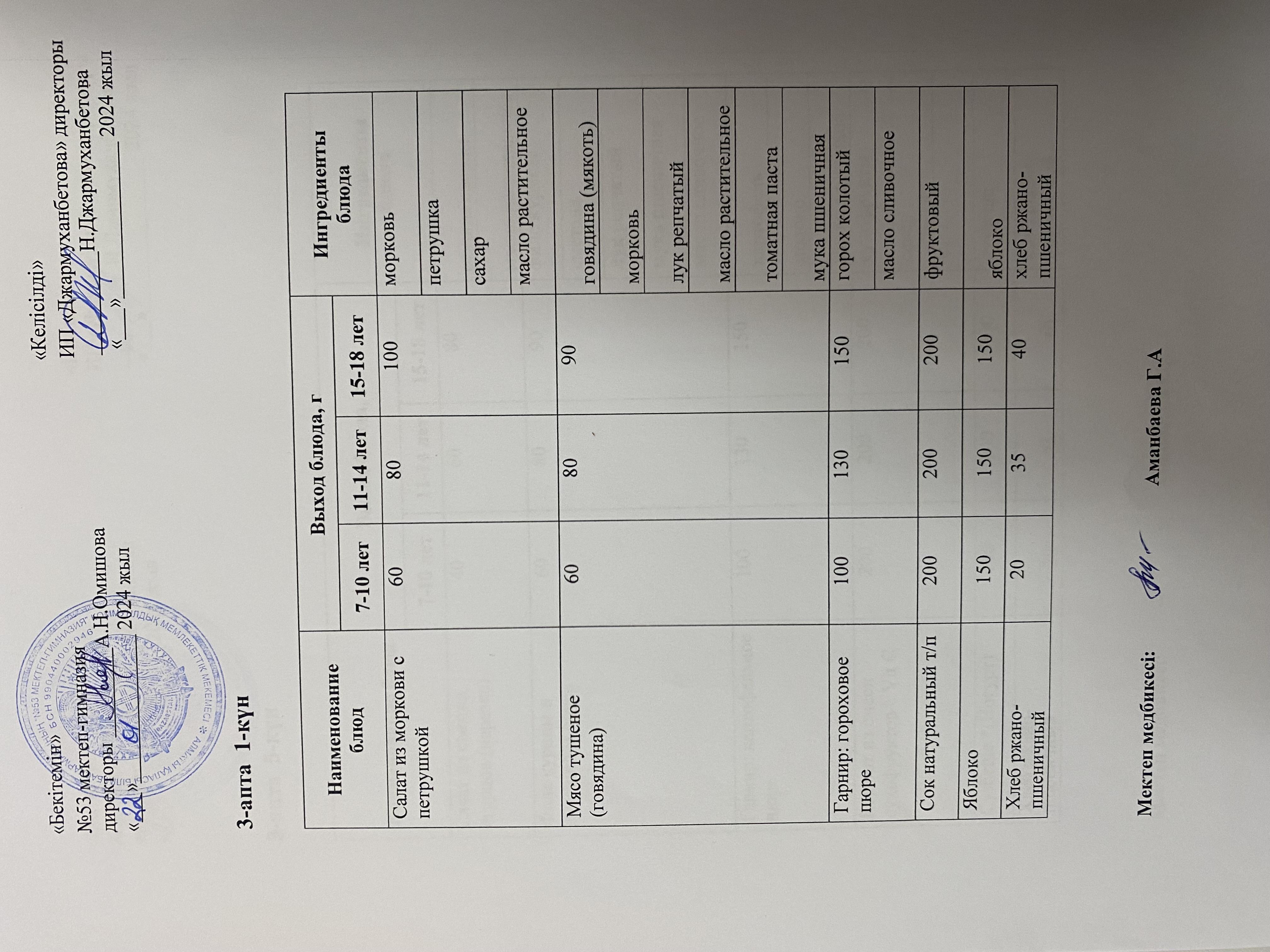 Қабылдау бөлімі :