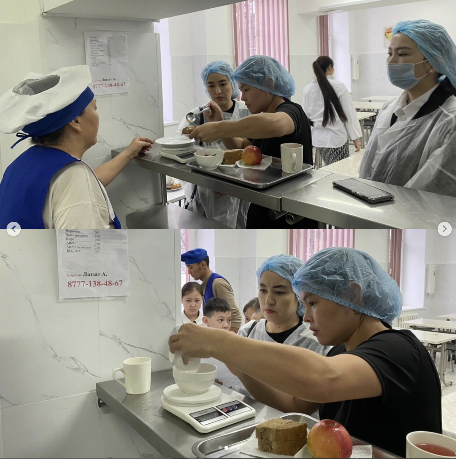 1 «Ә» сынып ата-анасы Донгабекова Анар Қаһармановна бракераждық комиссия мүшелерімен бірге мектебіміздегі асхананың тазалығы мен тамақтандырудың сапалық құрамын, мәзір мөлшеріне тексеріс жүргізді. Тексеріс барысында ас дайындайтын, сақтайтын орындарға кіріп, азық-түліктің сақтау мерзімі, сақталу орны мемлекеттік нормаларға сай келетініне, құжаттық қағидаттарды сақтайтынына көз жеткізіп ризашылығын білдіріп, оң бағасын берді.