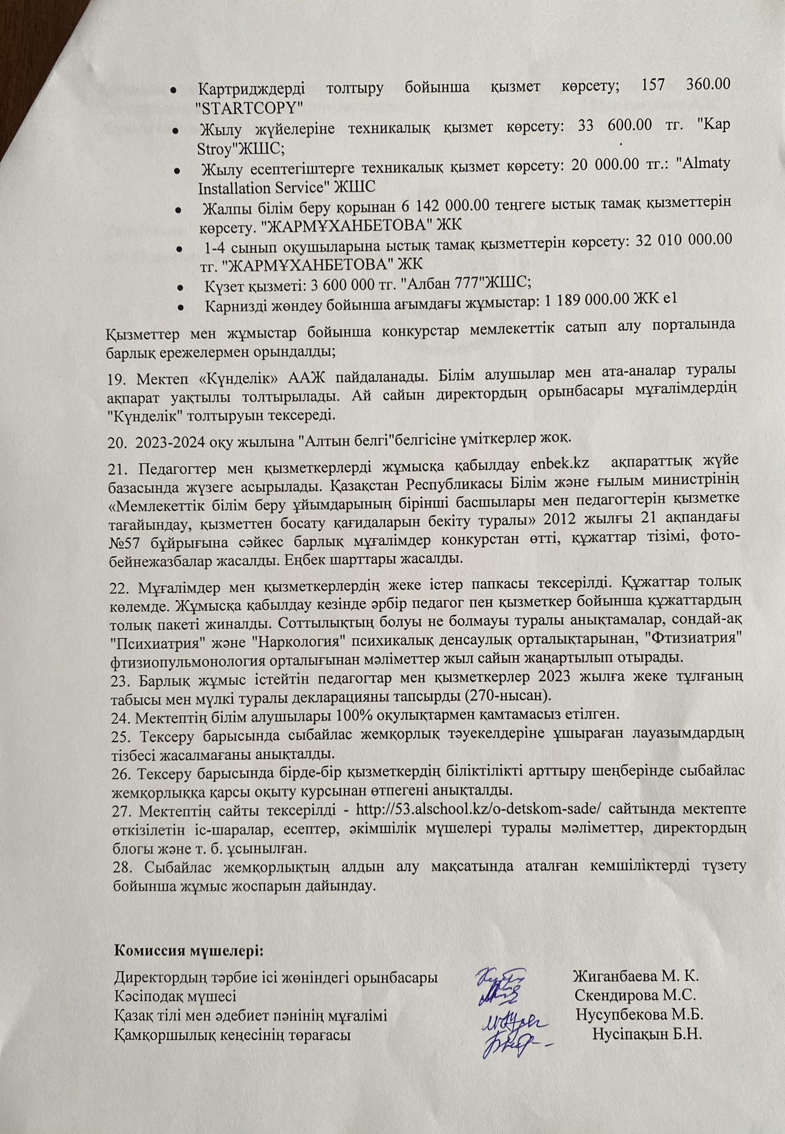 30 апрель 2024 0 1 2 3 4 5 Сыбайлас жемқорлық тәуекелдеріне ішкі талдау жүргізу нәтижелері бойынша анықтама