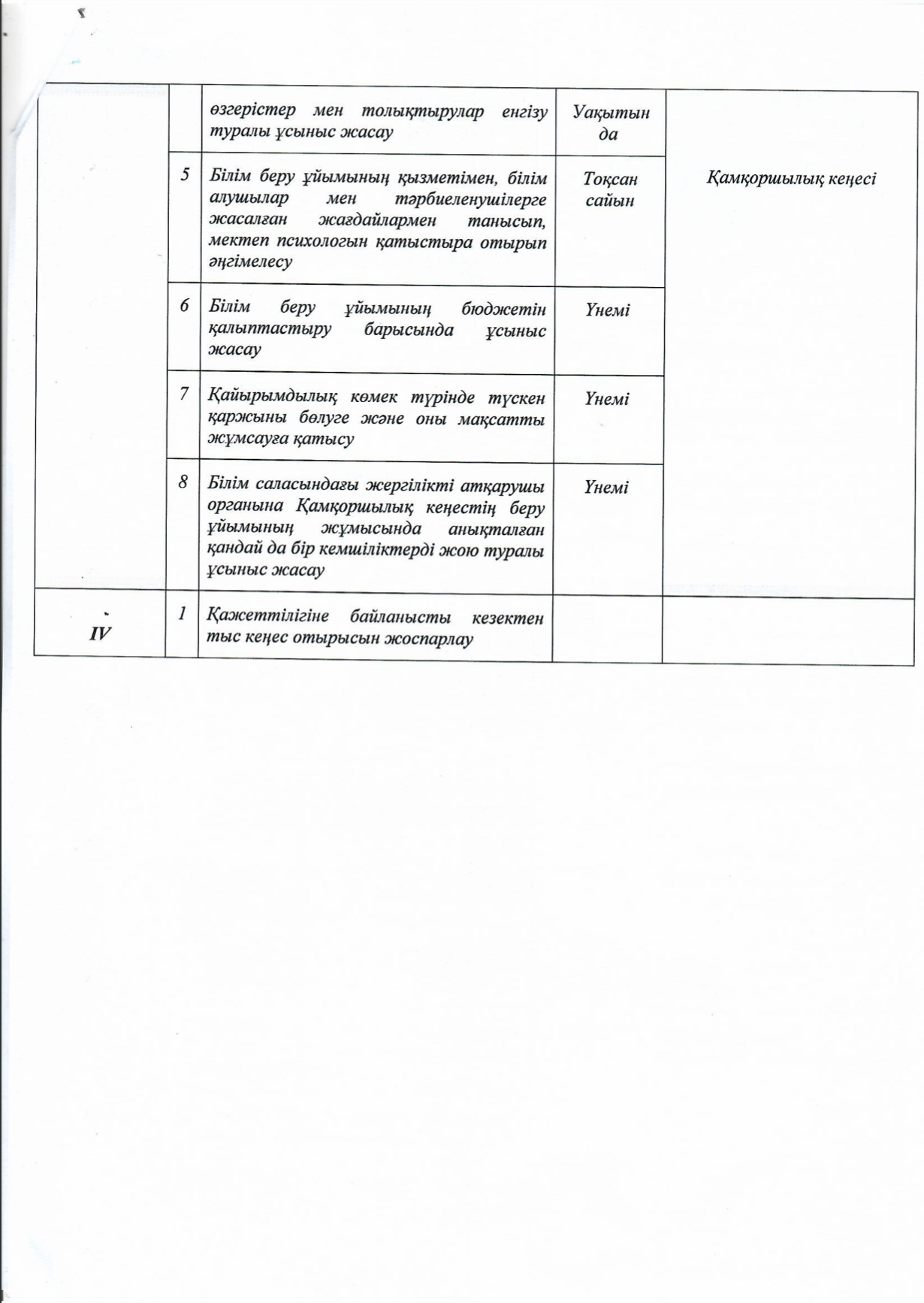 қамқоршылық кеңесінің жұмыс жоспары