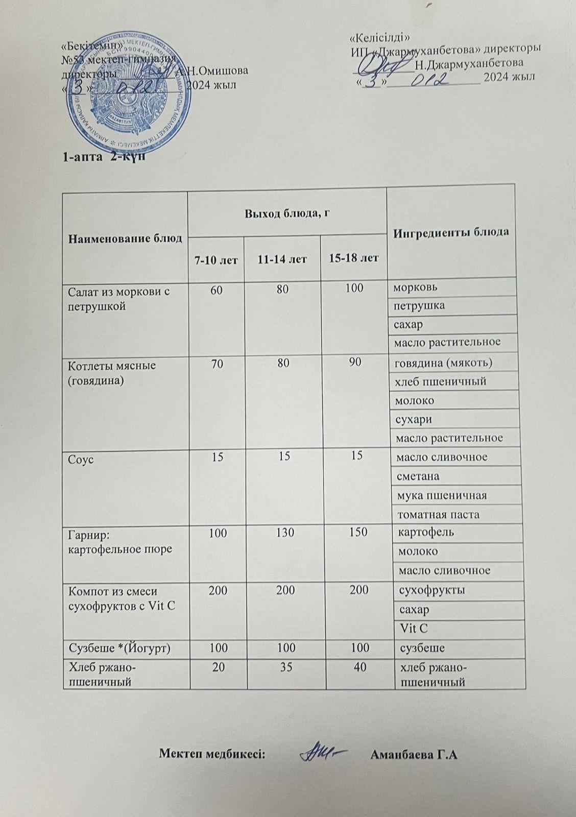 Қабылдау бөлімі :