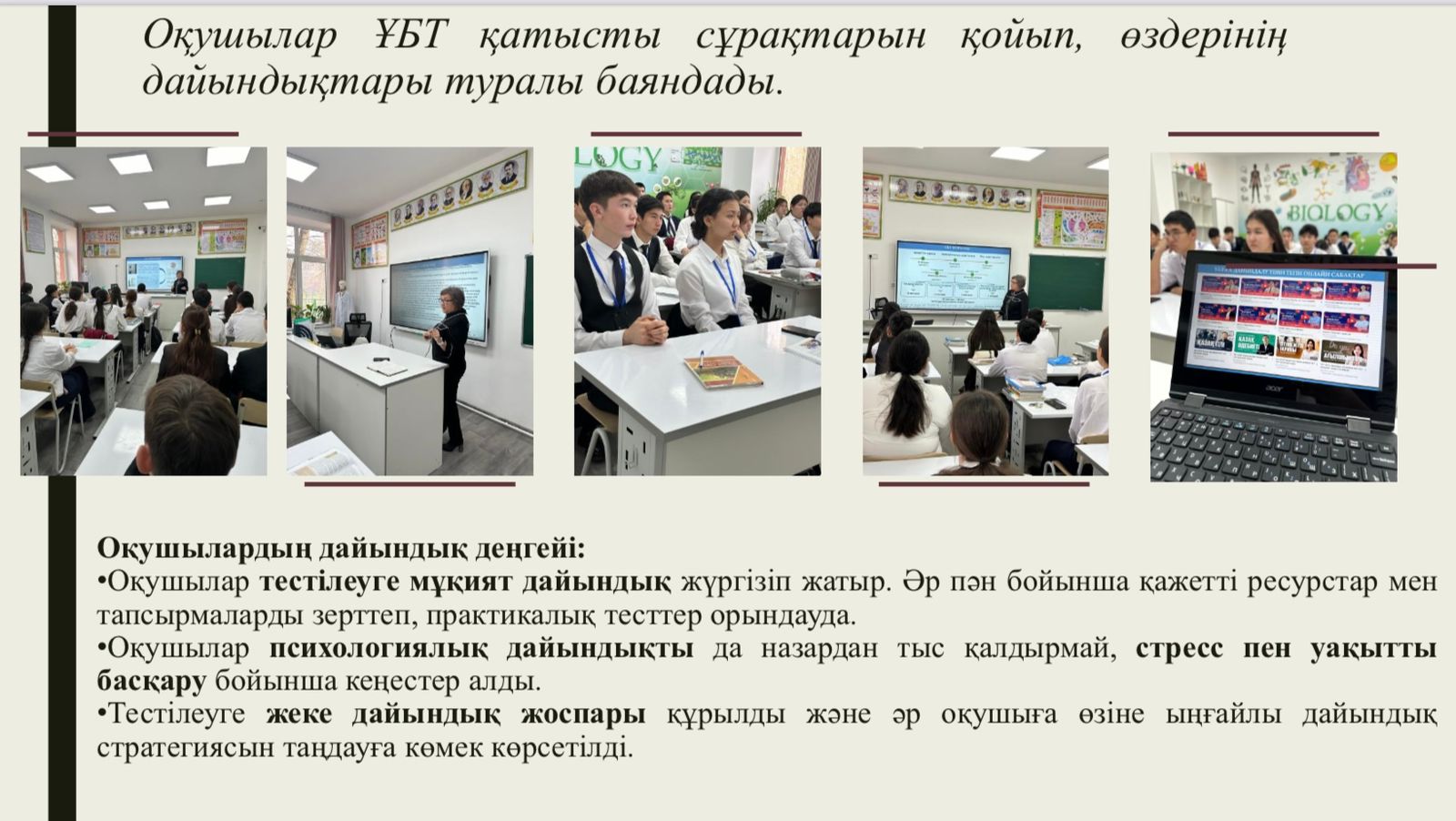 11-сынып оқушыларына Ұлттық бірыңғай тестілеу (ҰБТ) туралы түсіндірме жұмыстары