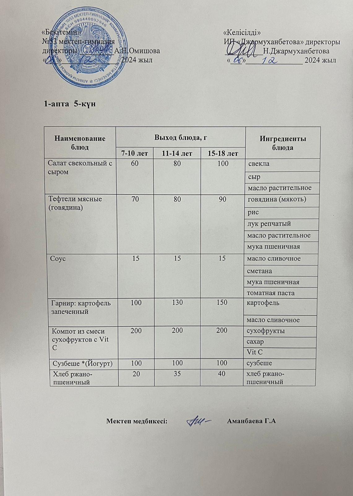 Қабылдау бөлімі :