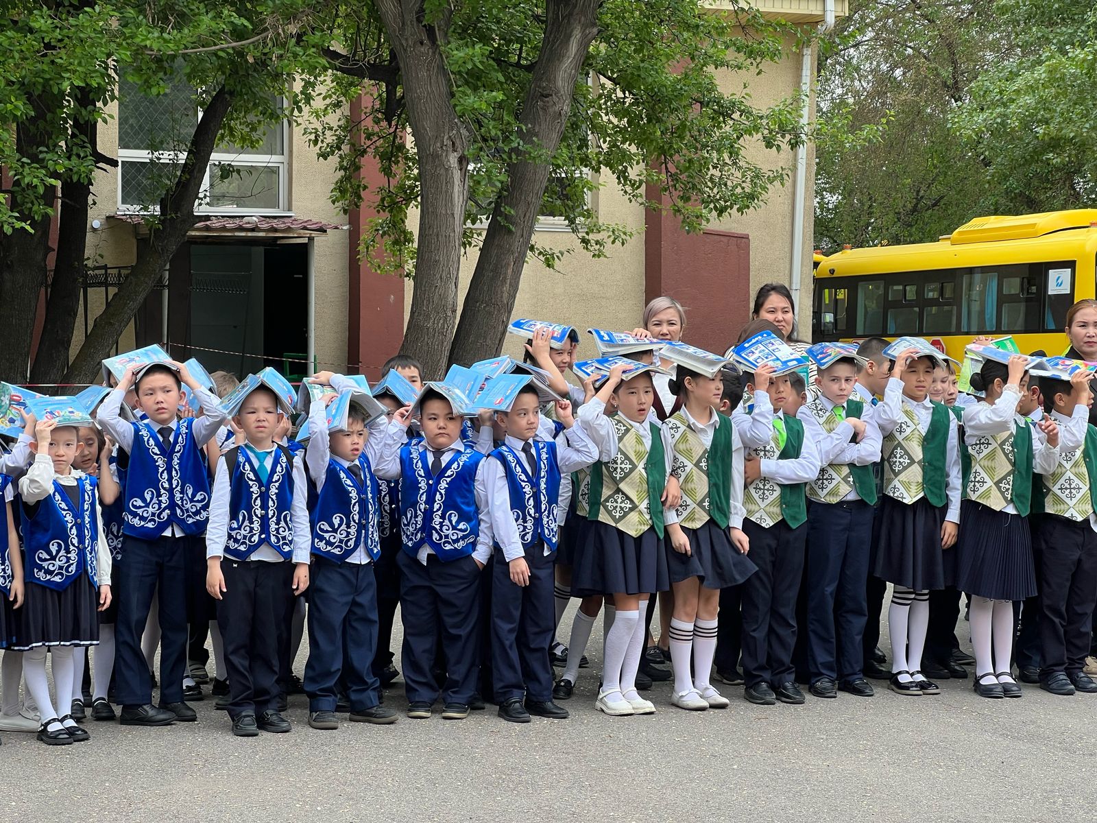 🧑🏫👧🧒 Дабыл белгісін ести сала, барлығы қауіпсіздік ережелеріне сай эвакуацияланып, жиналу нүктесіне ретімен шықты.