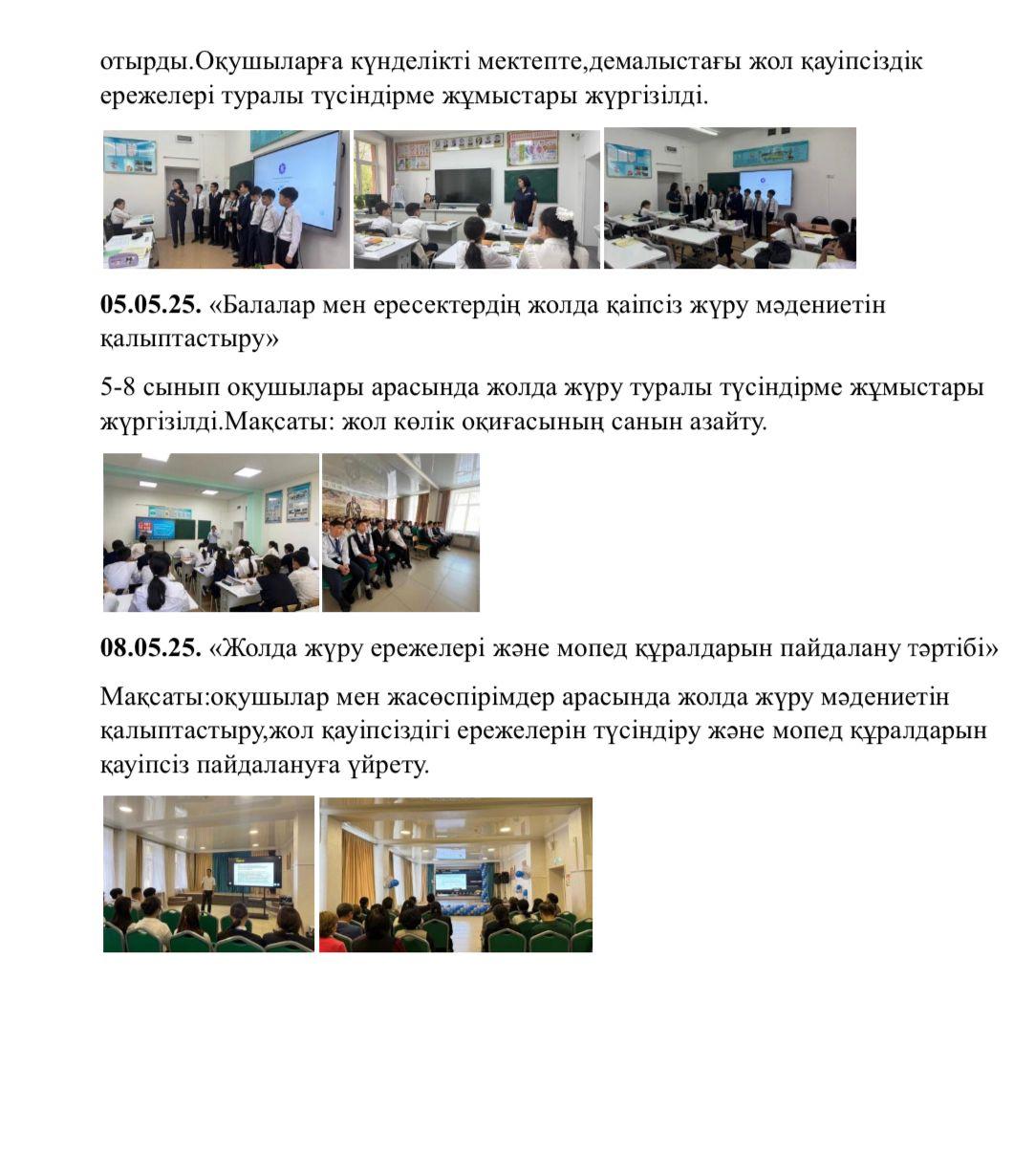 2022 -2023 оқу жылдарында «Жол жүру ережелері» кіріктірілген оқу бағдарламасы сынып сағаттарының есебінен және сабақтан тыс уақытта Жолда жүру ережелері: Оқушыларға арналған жолда жүру ережелері