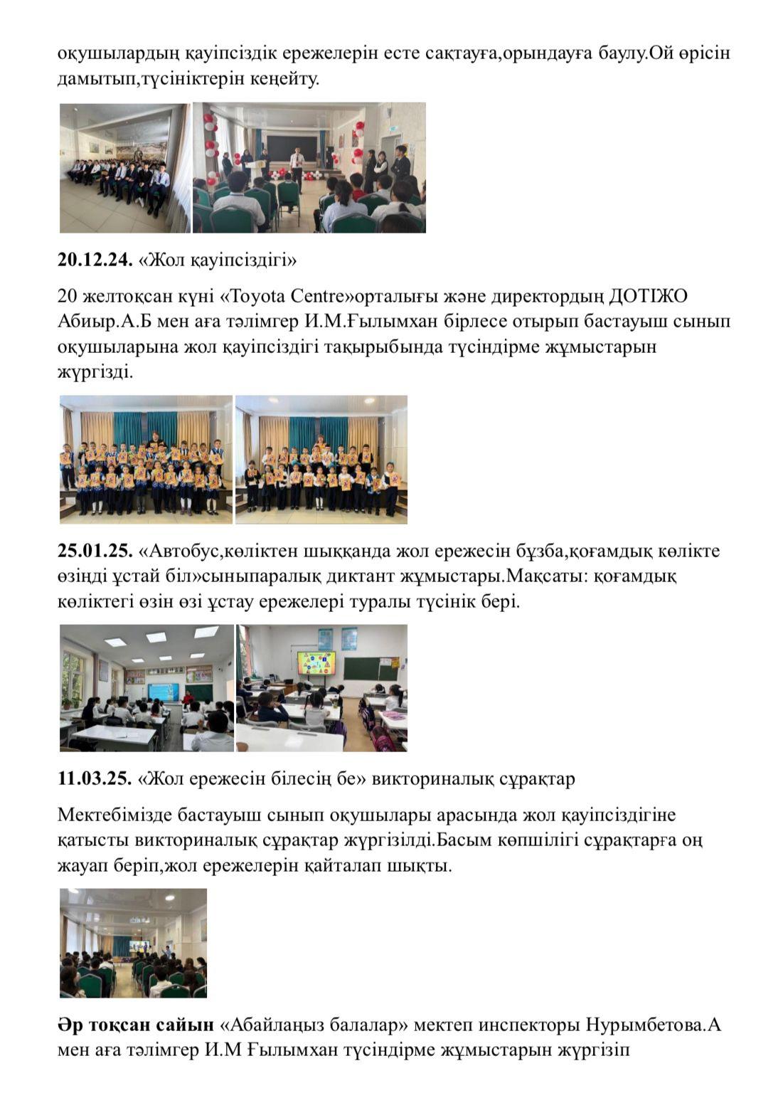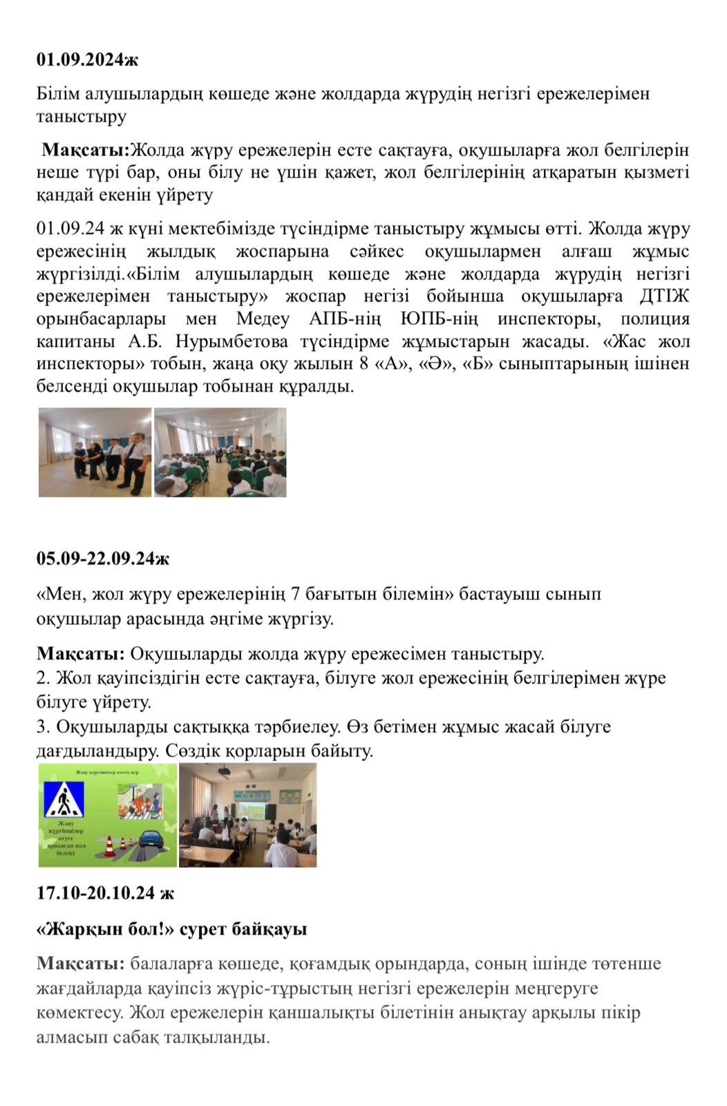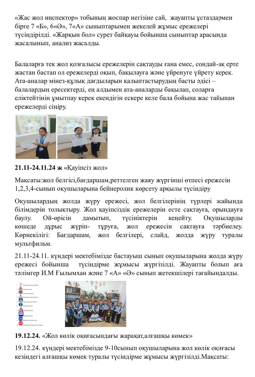 "ЖОЛДА ЖҮРУ ЕРЕЖЕСІ" БАҒДАРЛАМАСЫ БОЙЫНША ЖАСАЛЫНҒАН ЖЫЛДЫҚ ЕСЕП