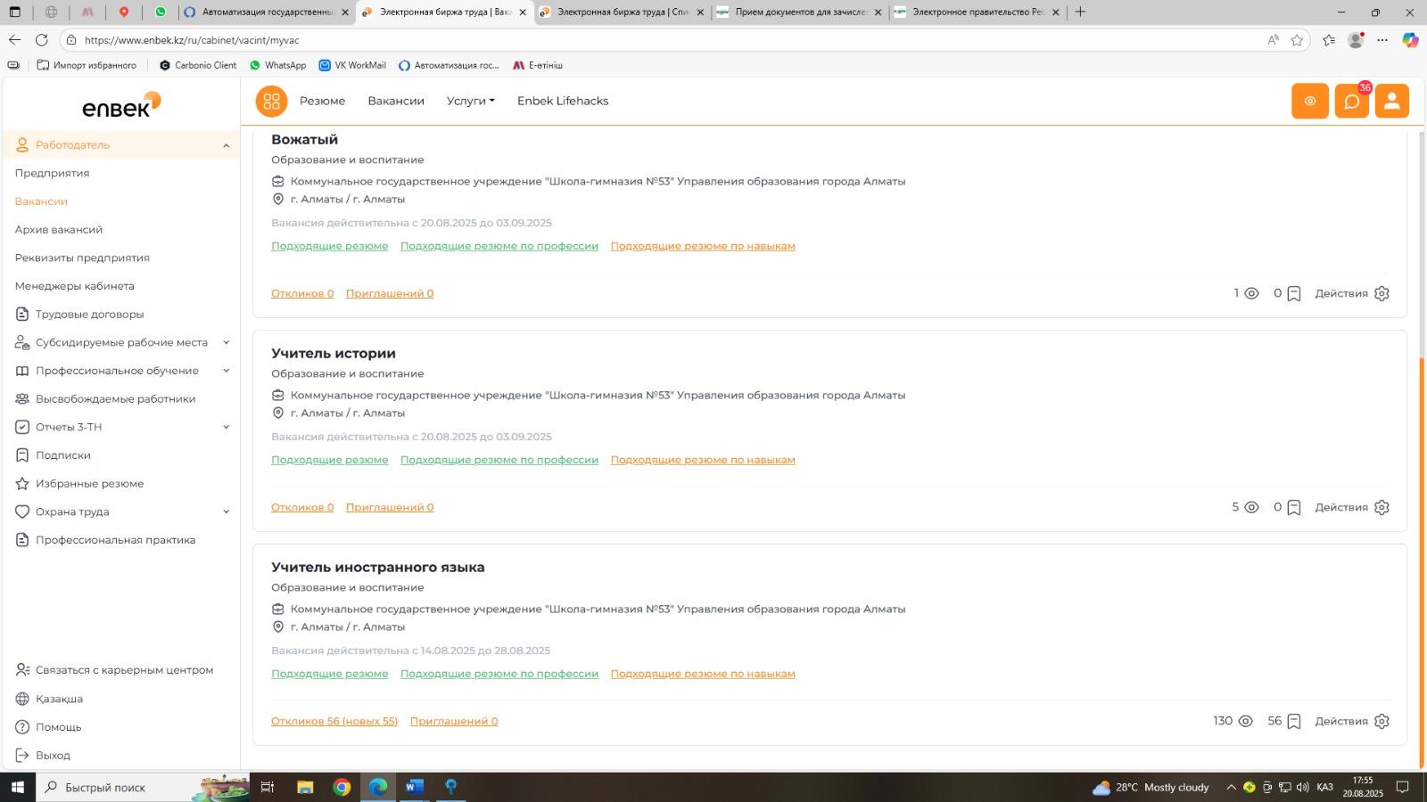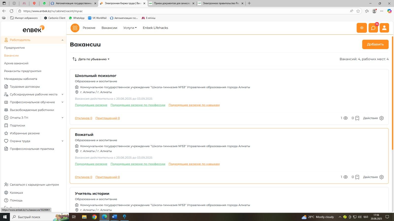 2024-2025 оқу жылына қажетті мамандарға вакансия