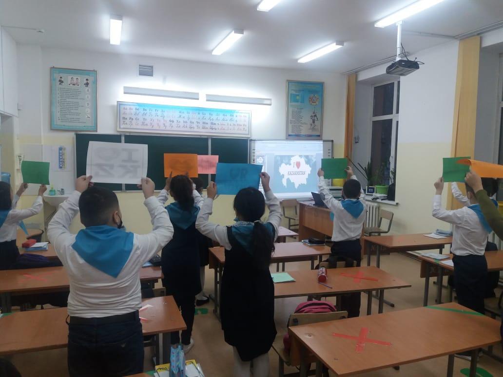 4 «Ә» сынып оқушылары мен сынып жетекшісі Қойлыбаева Алтын Молдановнаның флешмоб биінен үзінді.
