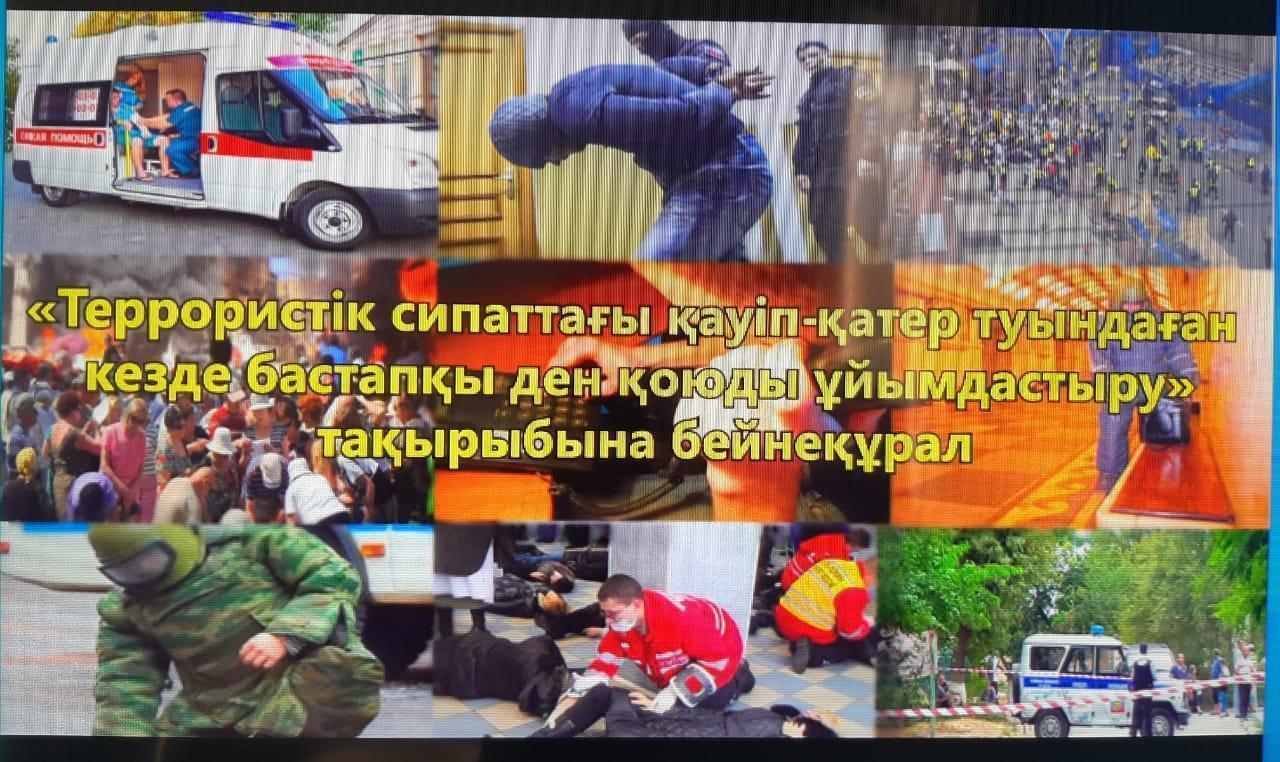 09 апрель 2021 0 1 2 3 4 5 "Террористік қауіпсіздік" [video=||"Террористік қауіпсіздік"]"Террористік сипаттағы қауіп-қатер туындаған кезде бастапқы ден қоюды ұйымдастыру" тақырыбына бейнеқұрал