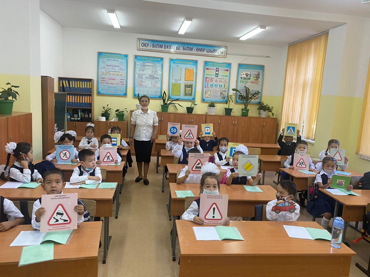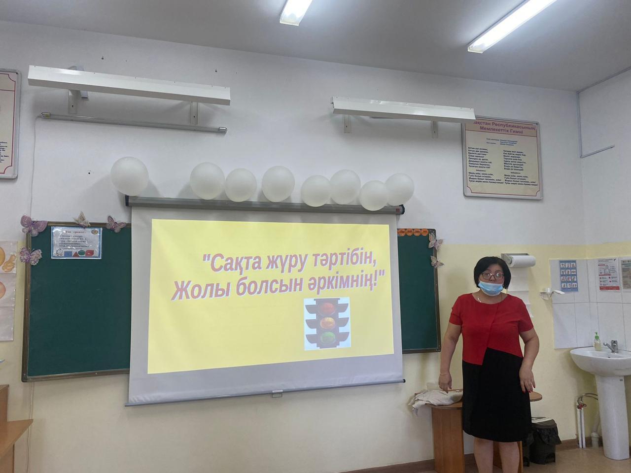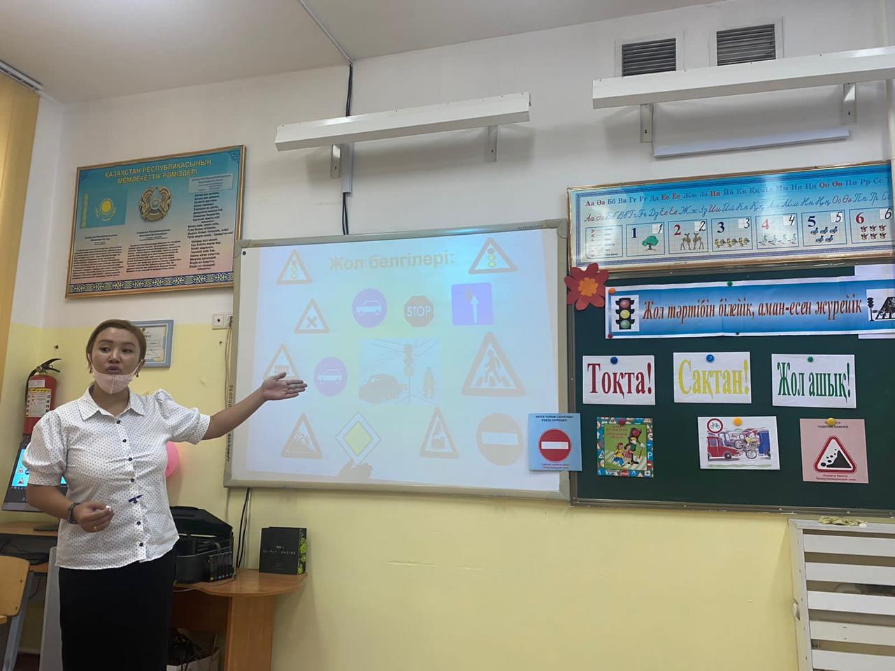 Бүгін мектебімізде 1-2 сыныптар арасында “Абайлаңыз, балақай!” атты тақырыпта жолда жүру ережелерін түсіндіруге арналған сынып сағаты өтті. Балаларға жолда жүру ережелері, бағдаршамның бағдарлары, сонымен қатар, шарттық белгілер түсіндірілді. Сабақ барысында балаларға әртүрлі ситуациялық сұрақтар қойылып, қызықты жауаптар алдық.