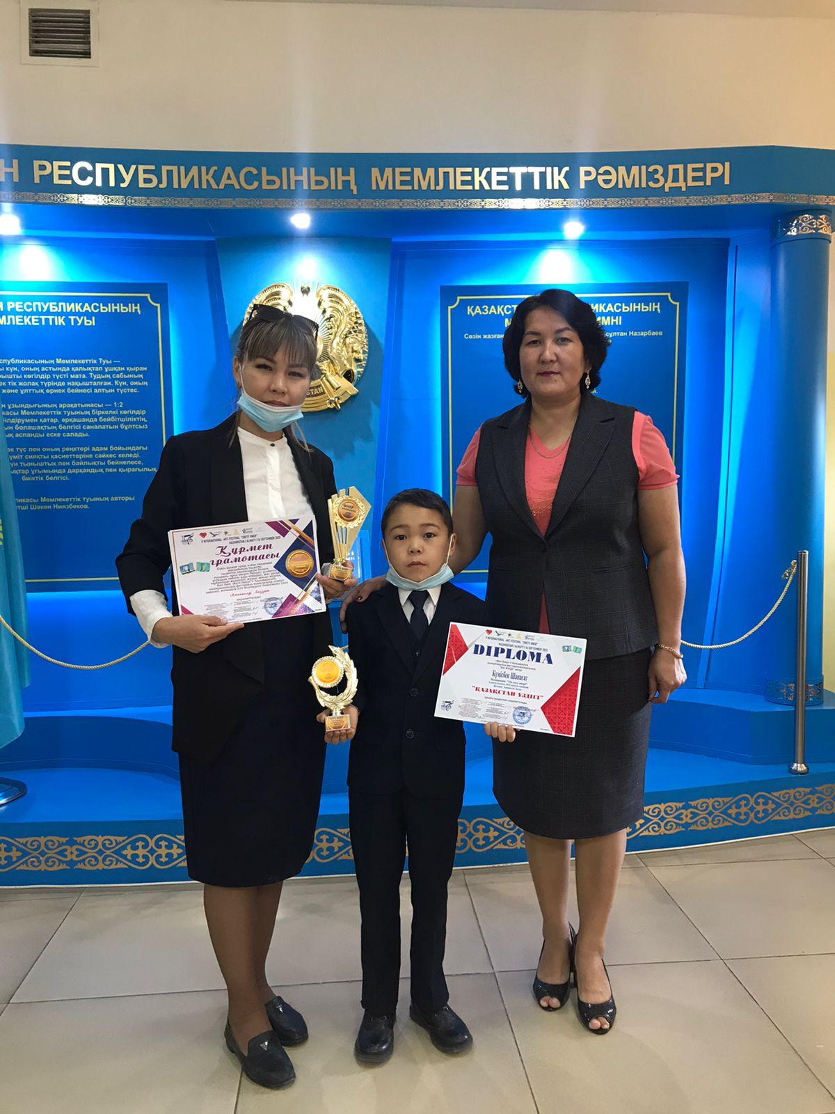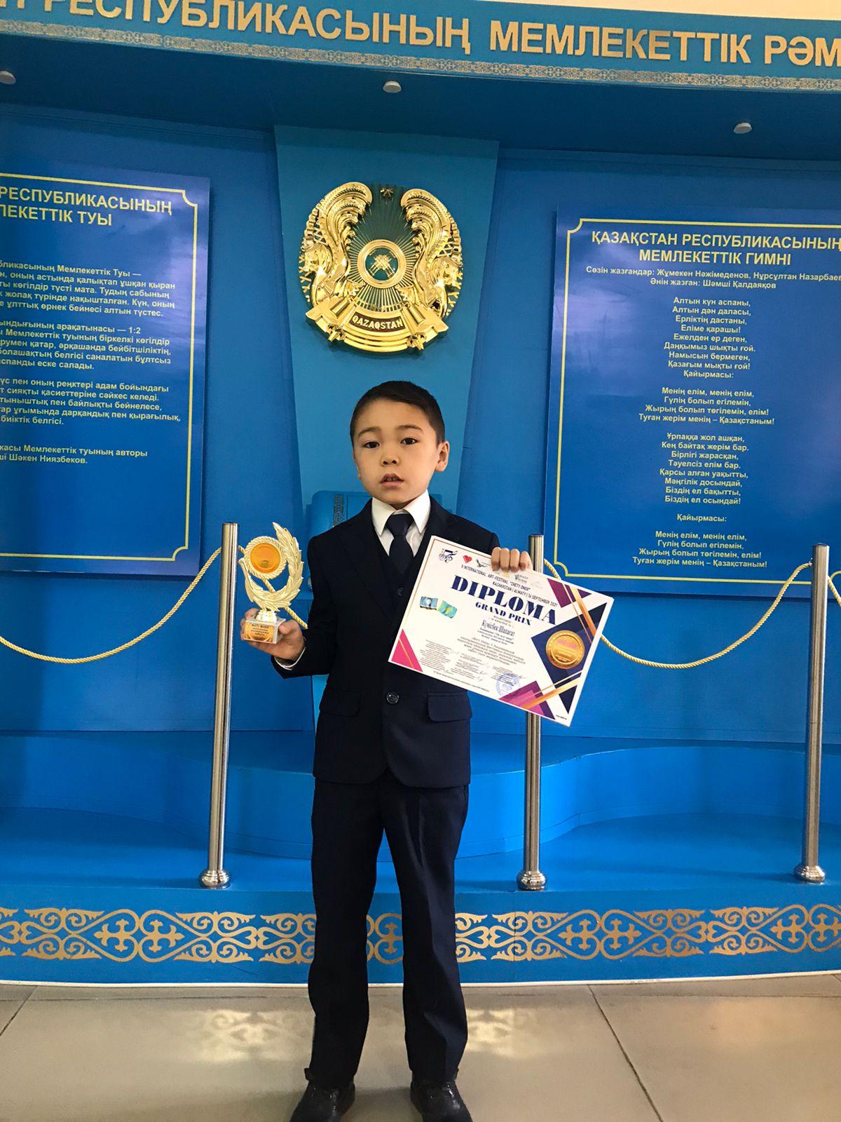 Мектебімізде тағы да қуанышты жаңалық! «Жеті өнер» V Халықаралық шығармашылық фестиваль- конкурсынан 2-сынып оқушысы Күмісбек Шапағат «Ән салу өнері» номинациясы бойынша БАС ЖҮЛДЕНІ жеңіп алды.