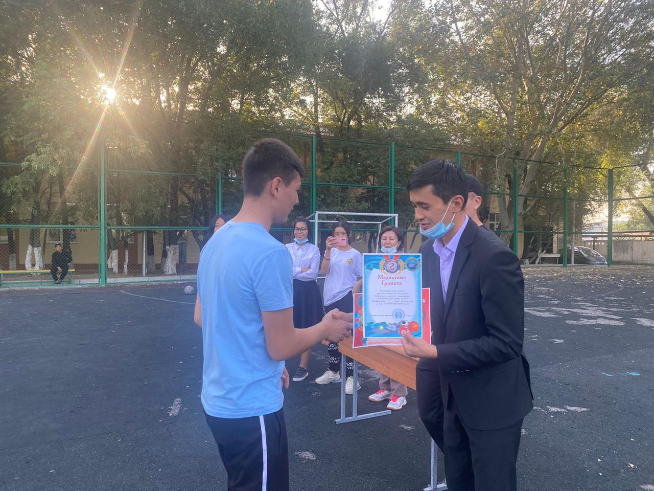 Спорт-денсаулық кепілі” атты тақырыпта оқушылар арасында футболдан жарыс өтті. Бұл жарыстың мақсаты-жастарды жаман әдеттерден аулақ болып, темекі, есірткі сияқты денсаулыққа зиян келтіретін нәрселерге бой алдырмауға насихаттау.