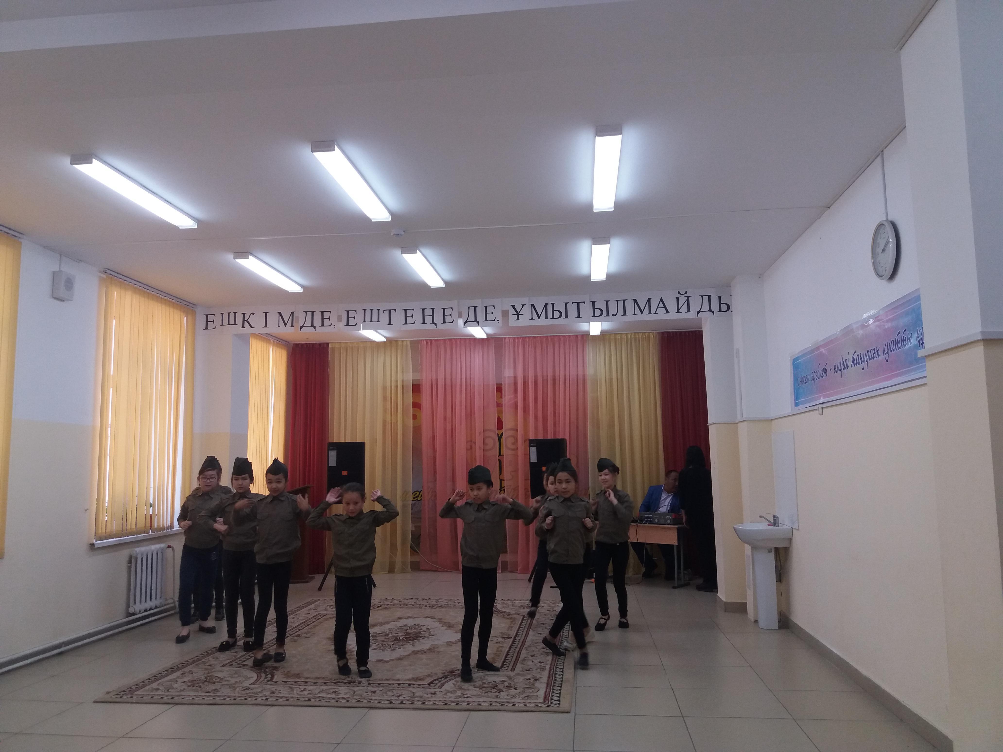 Оқушылардың бойында Отанға және туған елге деген сүйіспеншілік пен мақтаныш сезімдерін қалыптастыру мақсатында "Ешкім де, ешнарсе де, ұмытылмайды" тақырыбында мектебімізде мерекелік концерт өтті. Маңызды мерекеге орай, салтанатты концерттің негізгі идеялық желісі – Отан үшін құрбан болғандарды еске алу, ардагерлерге құрмет көрсету, Отанды қорғау парызының киелілігі, бейбітшілік пен келісімді сақтау маңыздылығы, еліміздің тәуелсіздігі мен егемендігін қорғау болып табылады. Концерттік бағдарламада патриоттық әндер мен Отан, оның батырлары мен жауынгерлері туралы отандық сазгерлердің музыкалық шығармалары орындалды.