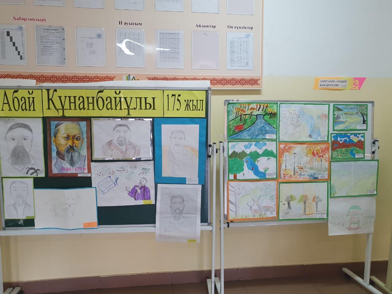 «Абай. Уақыт. Өнер». Осындай атпен №53 мектеп-гимназиясында Абай Құнанбайұлының 175 жылдығына орай суретшілер көрмесі өтті. Көрмеге 1-4-сыныптар арасындағы оқушылар салған шығармалары қойылған. Көрмеден Абайдың бала бейнесінен бастап, отбасы мүшелерін, әжесі Зере мен анасы Ұлжанның да кескіндерін көруге болады.