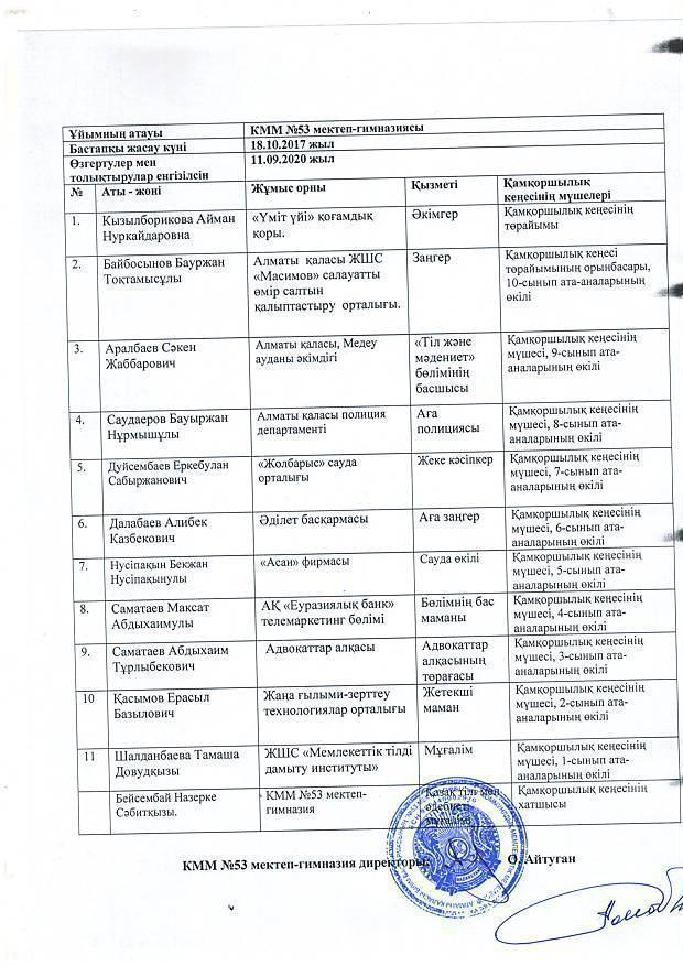 » "Қамқорлық кеңес" ұйымының құрамы