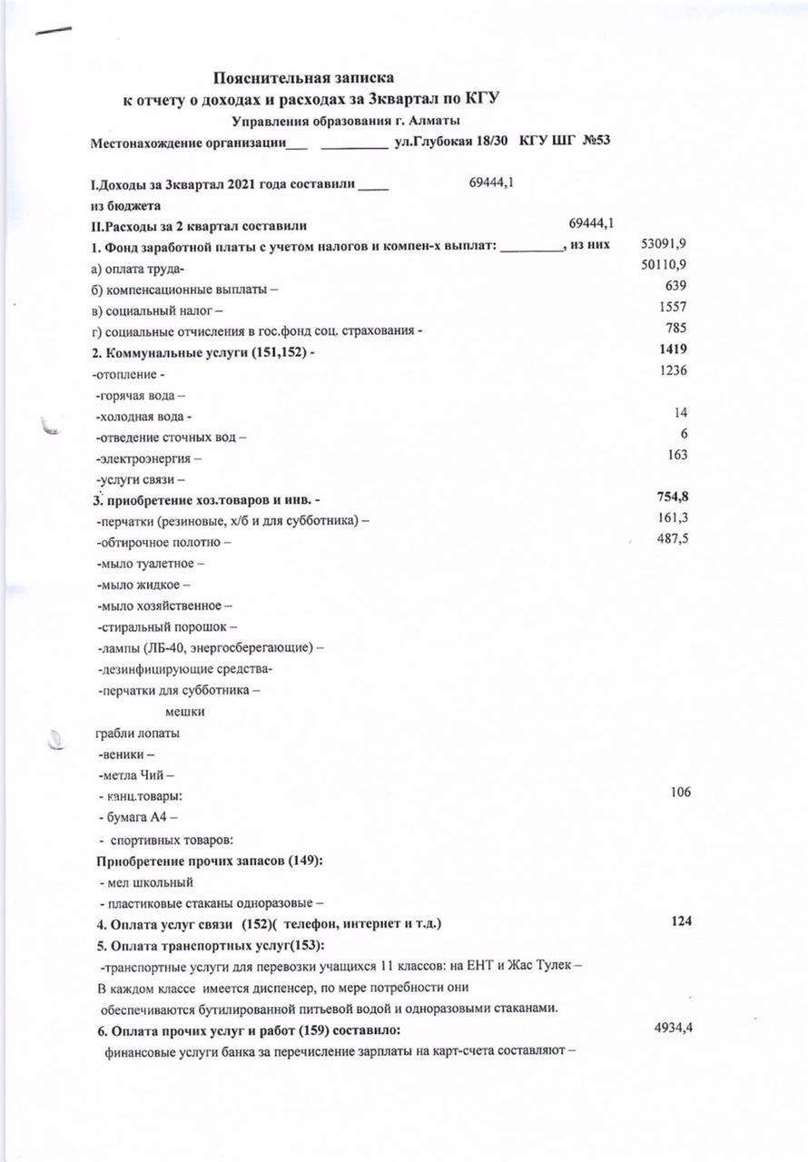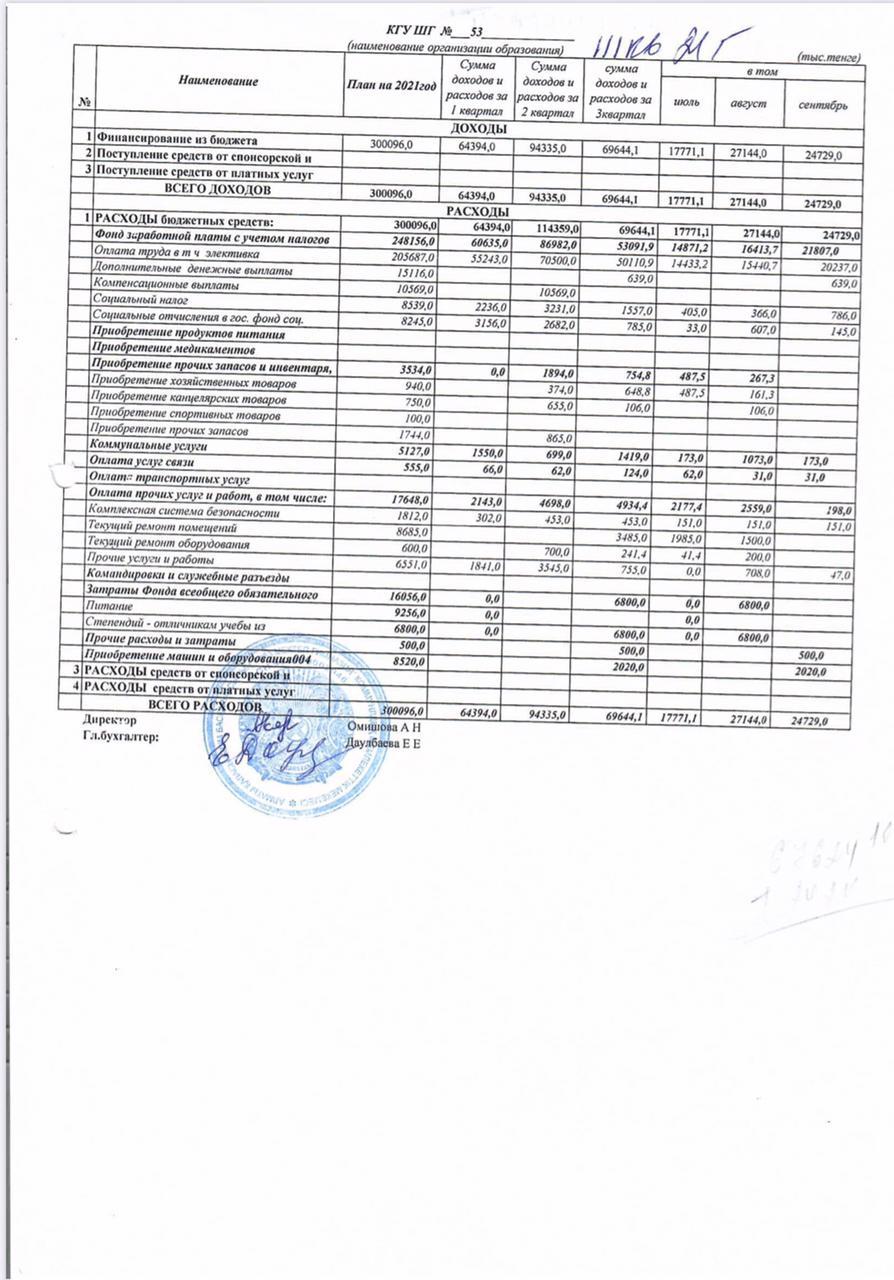 » Отчет о доходах и расходах за 3 квартал 2021
