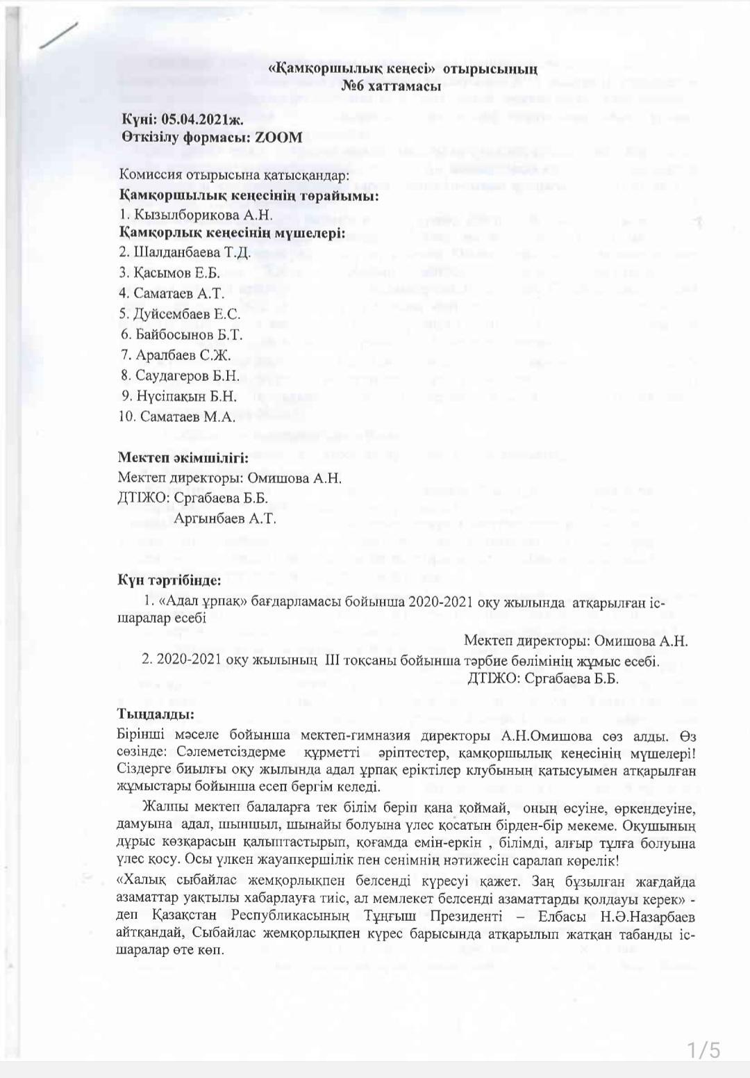 Қабылдау бөлімі :