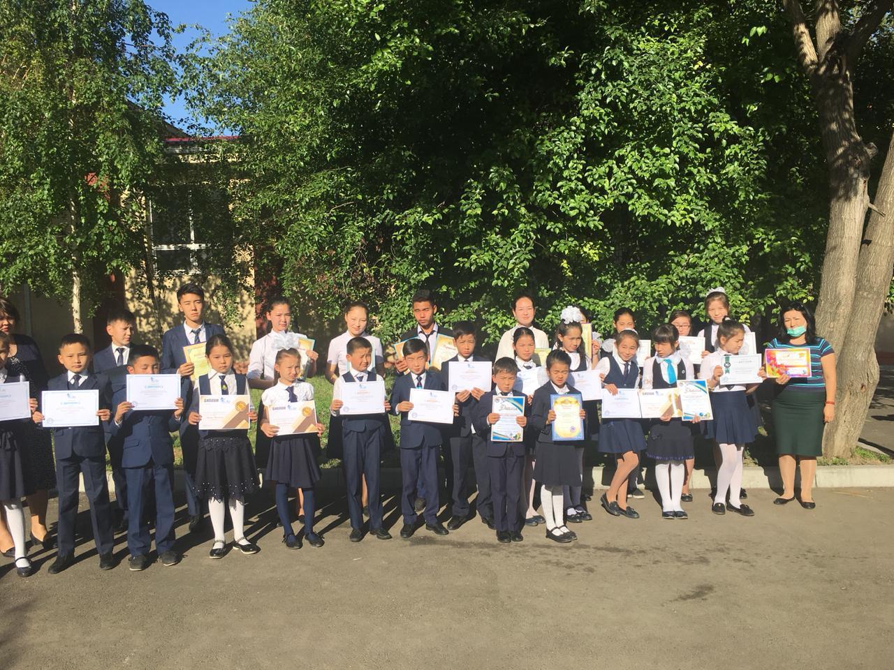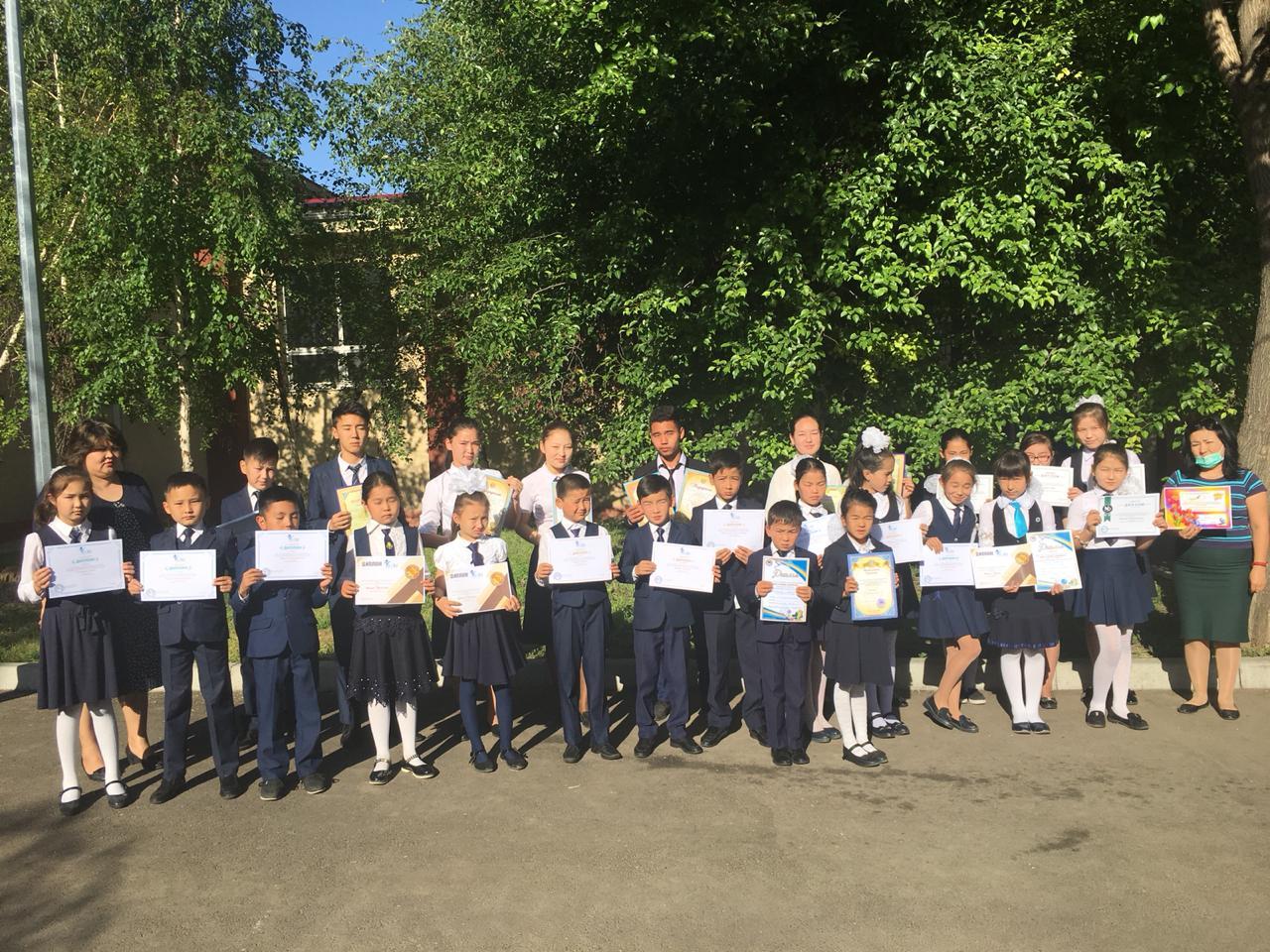 2018-2019 оқу жылында аудан және облыс көлемінде ұйымдастырылған пәндік олимпиадаға, мектебіміздің білімді де, дарынды оқушылары қатысып, өздерінің білімдерін көрсетіп, бақтарын сынады. Оқушыларымыз ұстаздардың еңбектерін ақтап, аудандық және облыстық олимпиададан күткеніміздей жүлделі орындарды иеленді. Осыған орай бүгін мектебімізде олимпиада жеңімпаздарын мадақтама қағаздарымен, I және II дәрежелі дипломдармен, марапаттады.