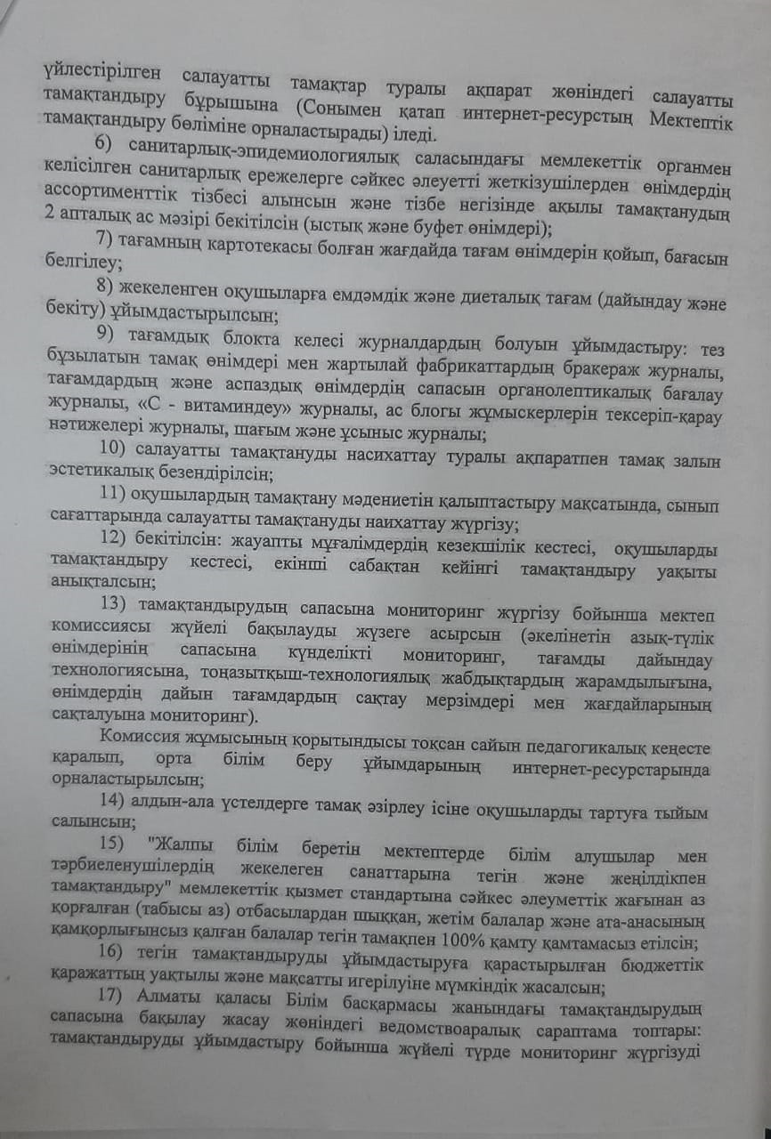 03 ноябрь 2020 0 1 2 3 4 5 Л.Жылқыбаеваның 10.01.2020 жылы мектептерді тегін және жеңілдетілген ыстық тамақпен қамтамасыз ету жөніндегі хаты.