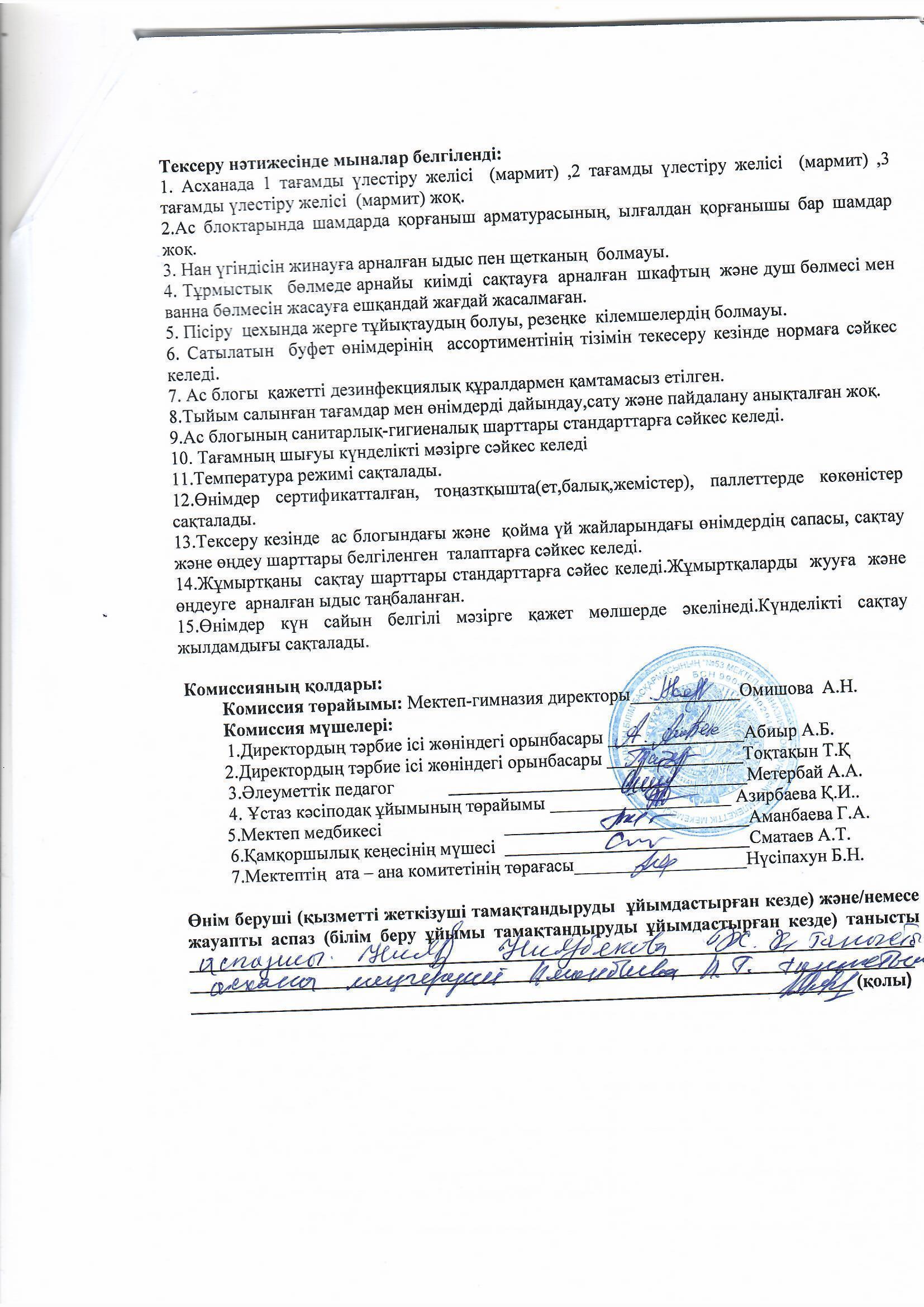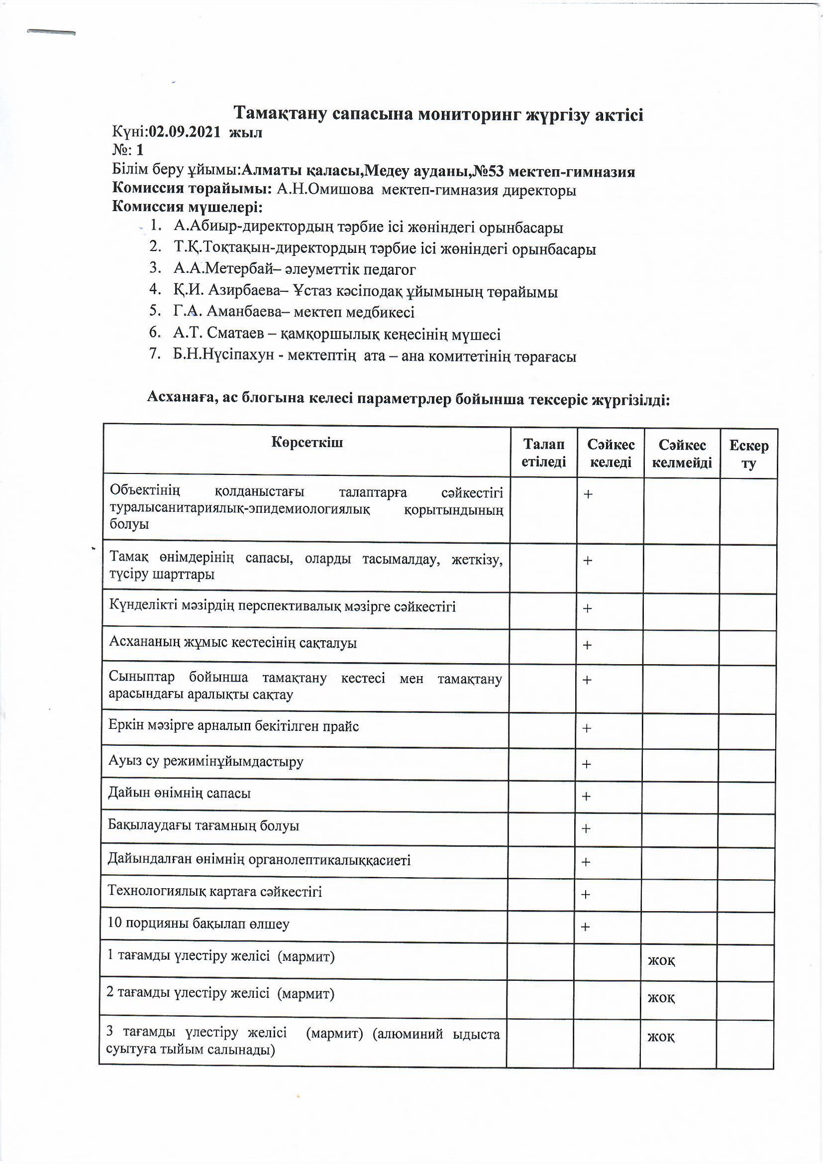 » Тамақтандырудың сапасына мониторинг жүргізу актісі