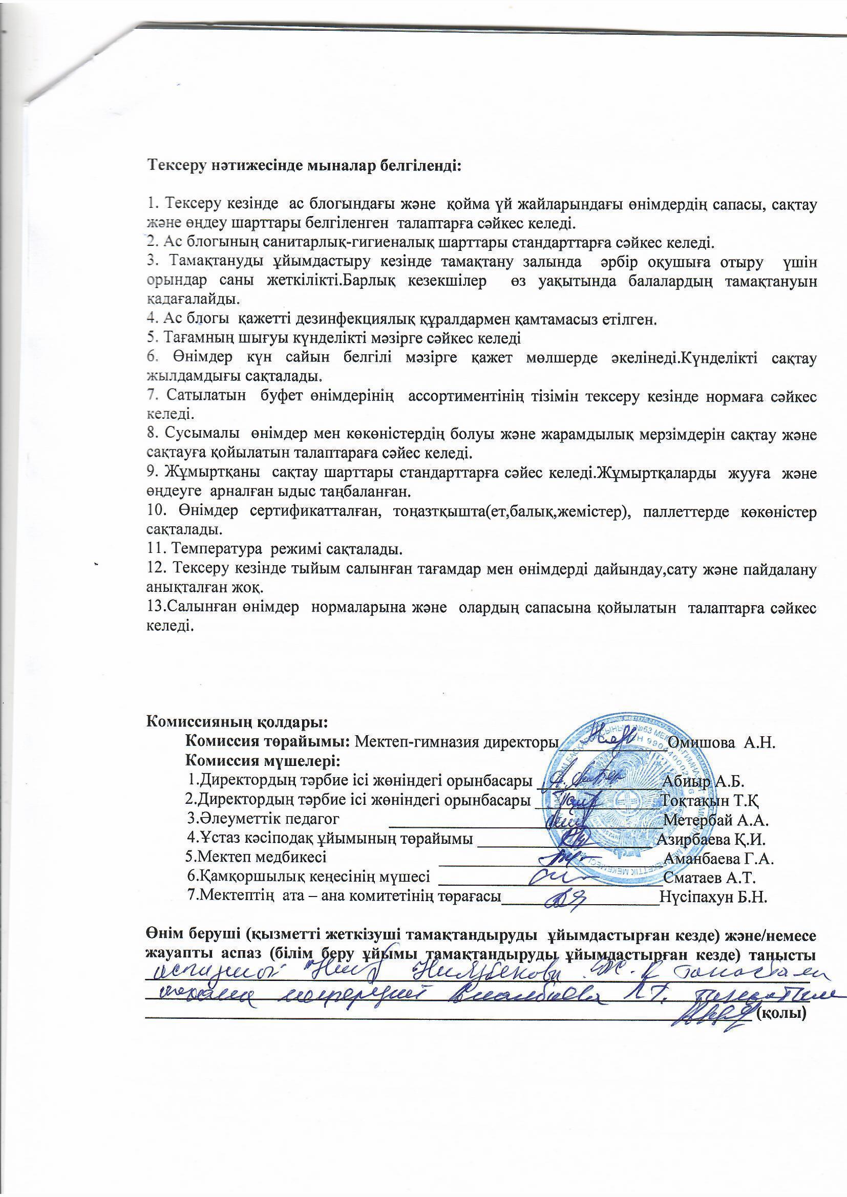 » Тамақтандырудың сапасына мониторинг жүргізу актісі