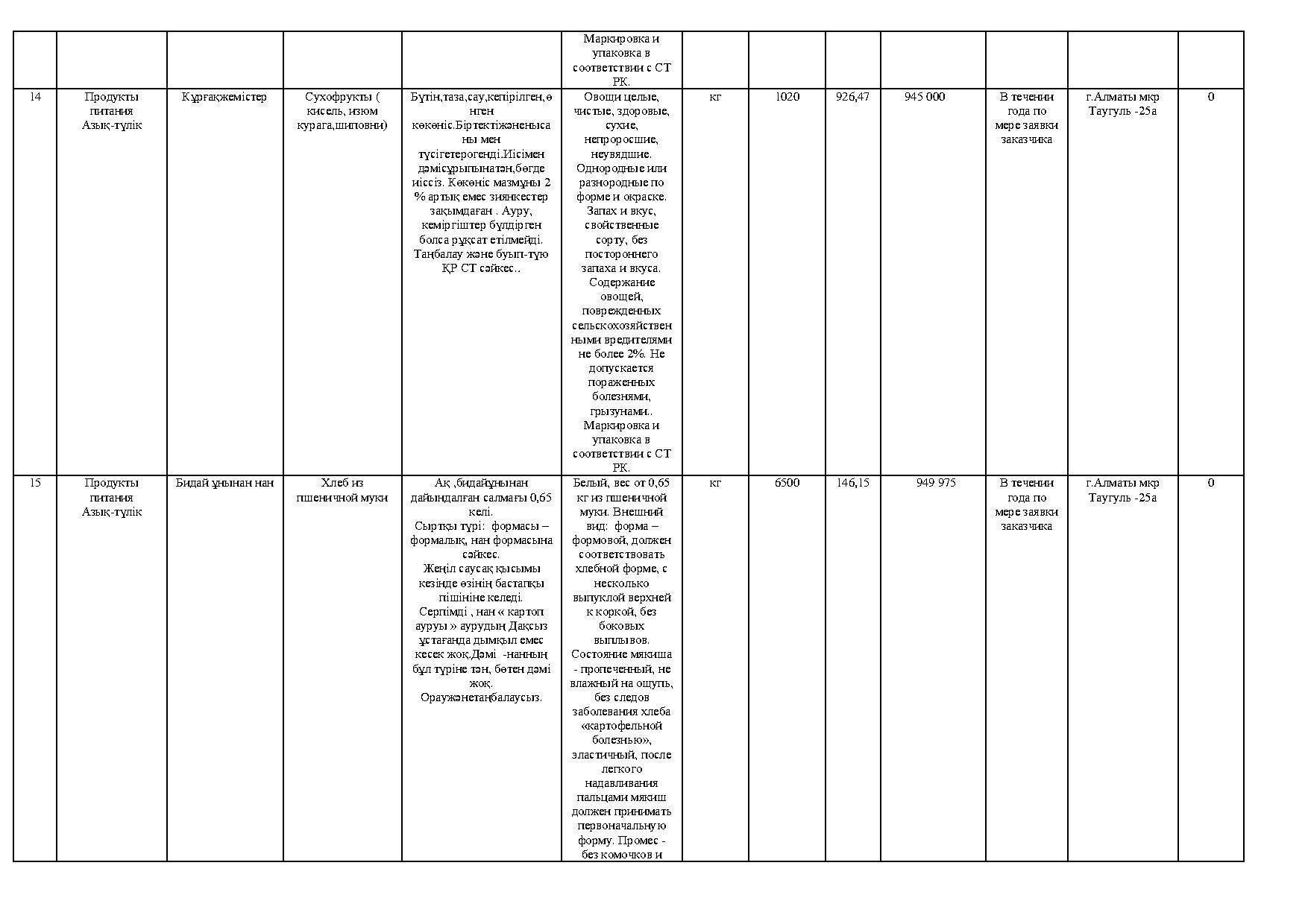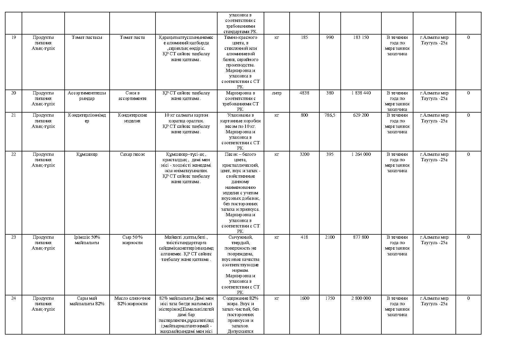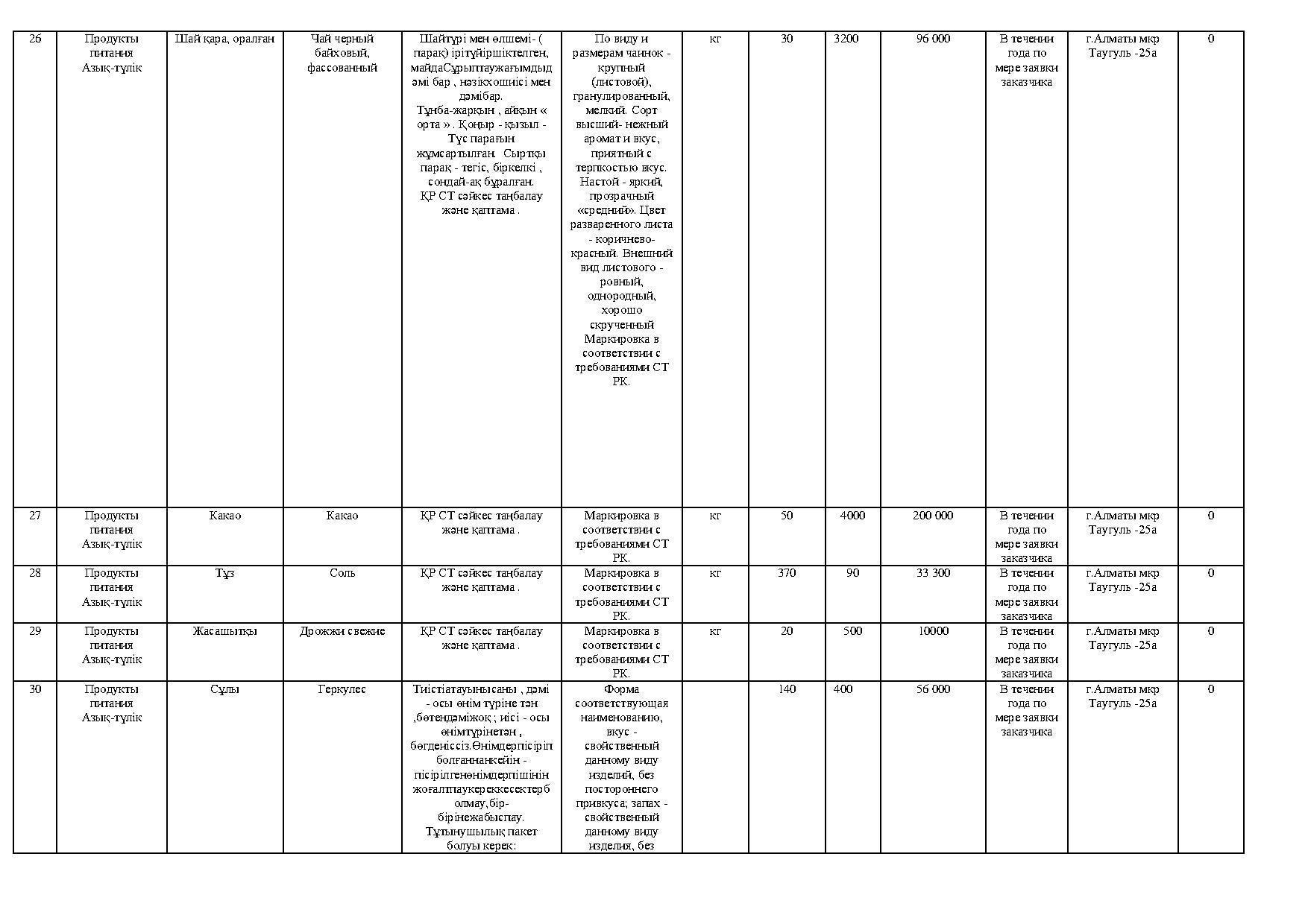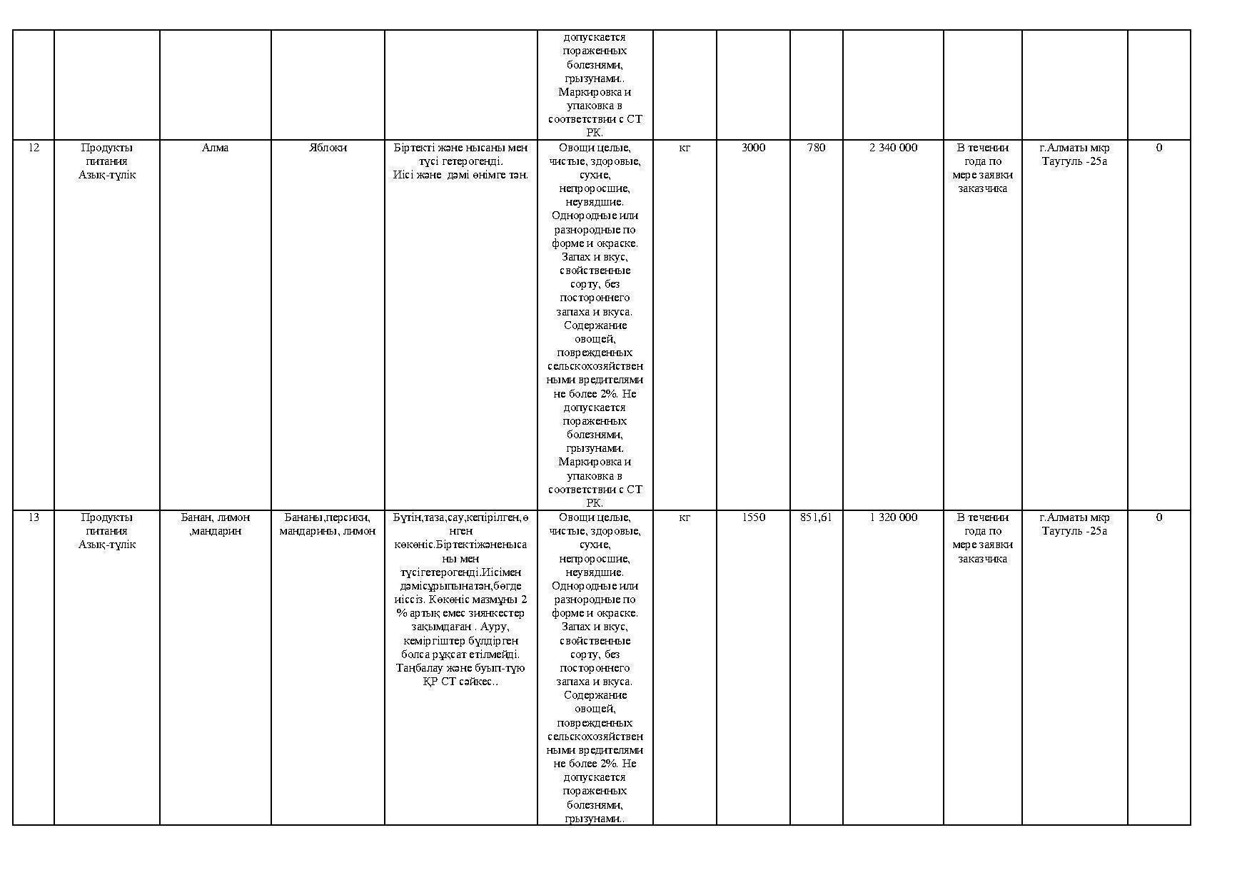 план приобретения товаров продуктов питания