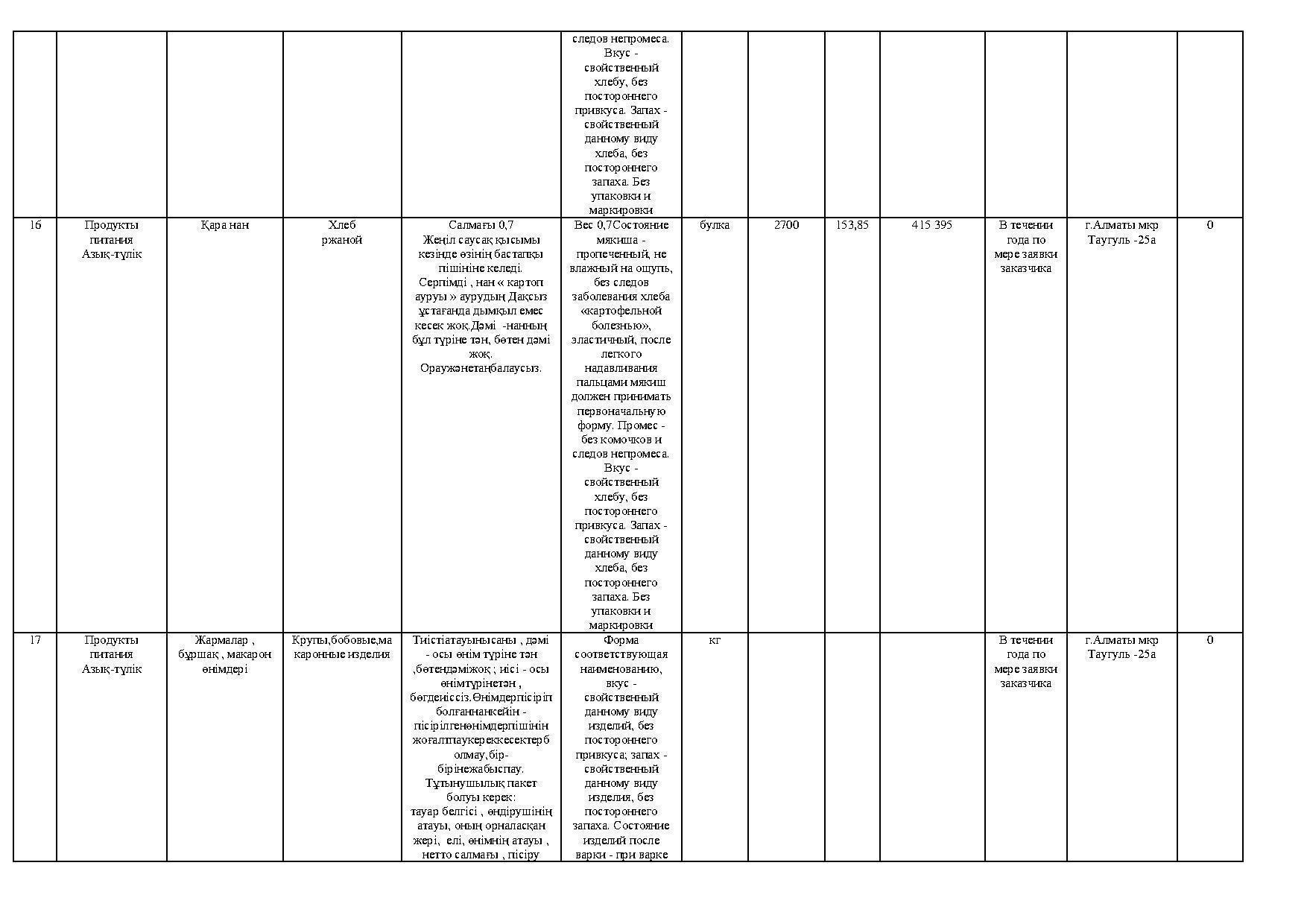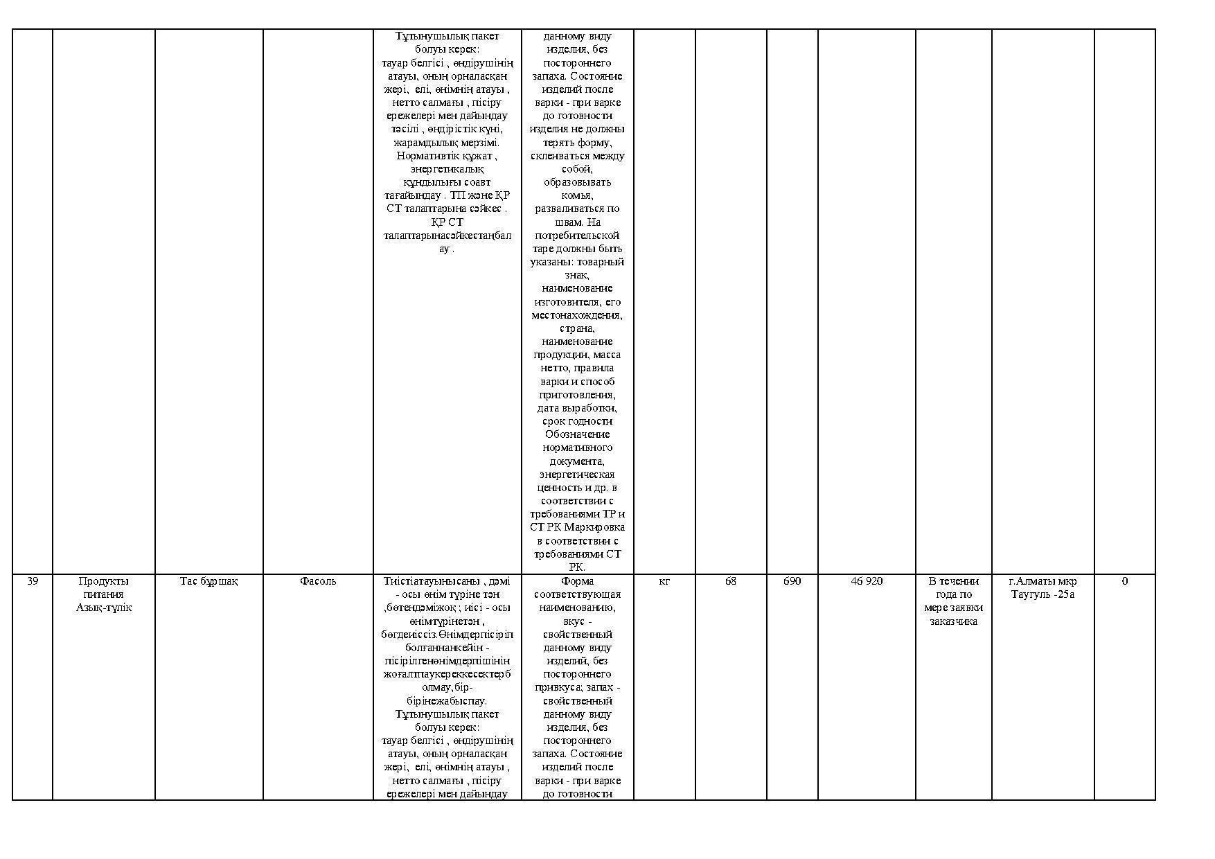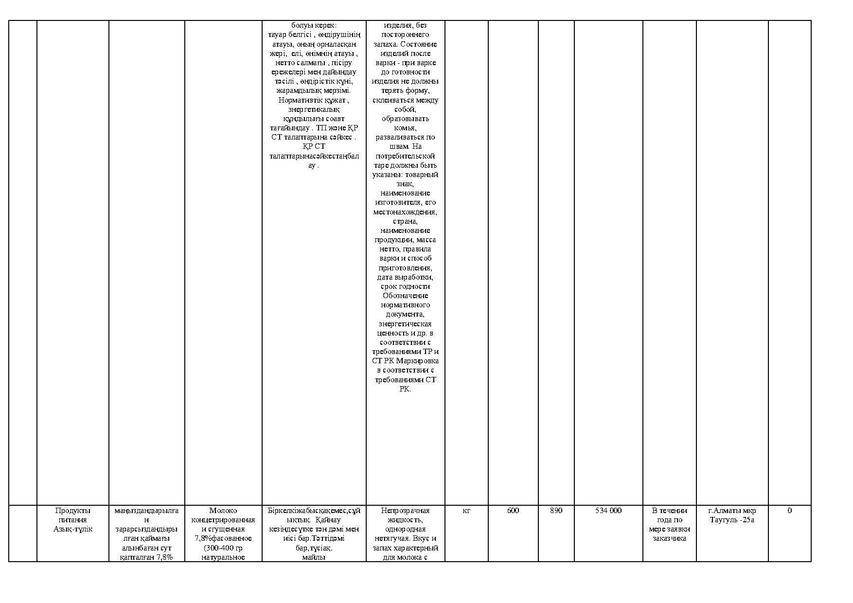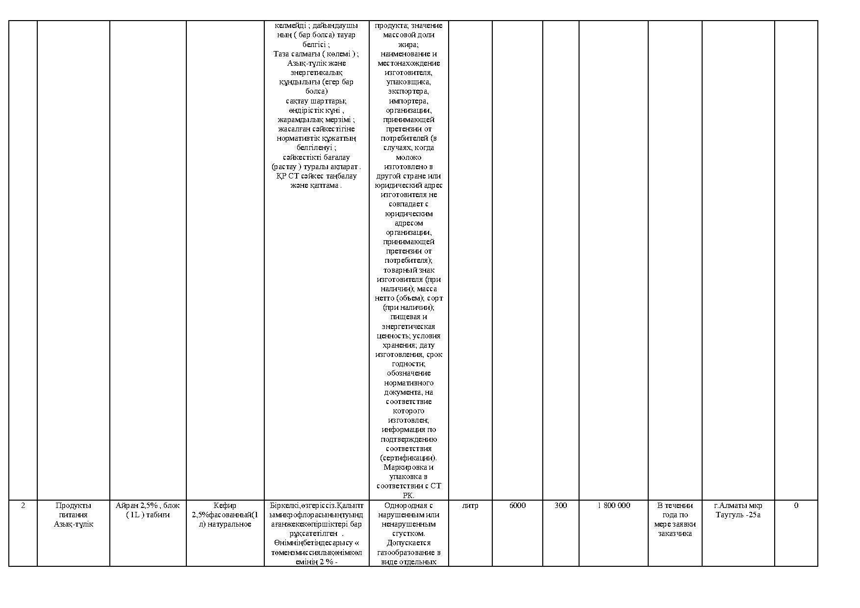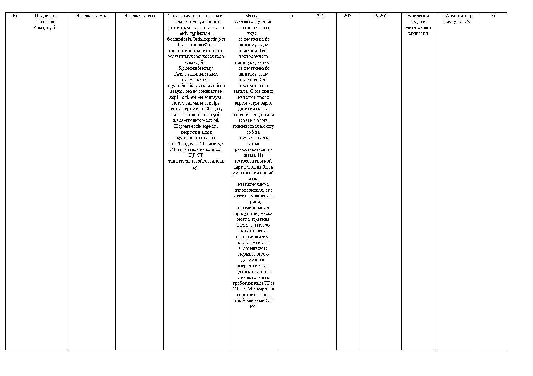 план приобретения товаров продуктов питания